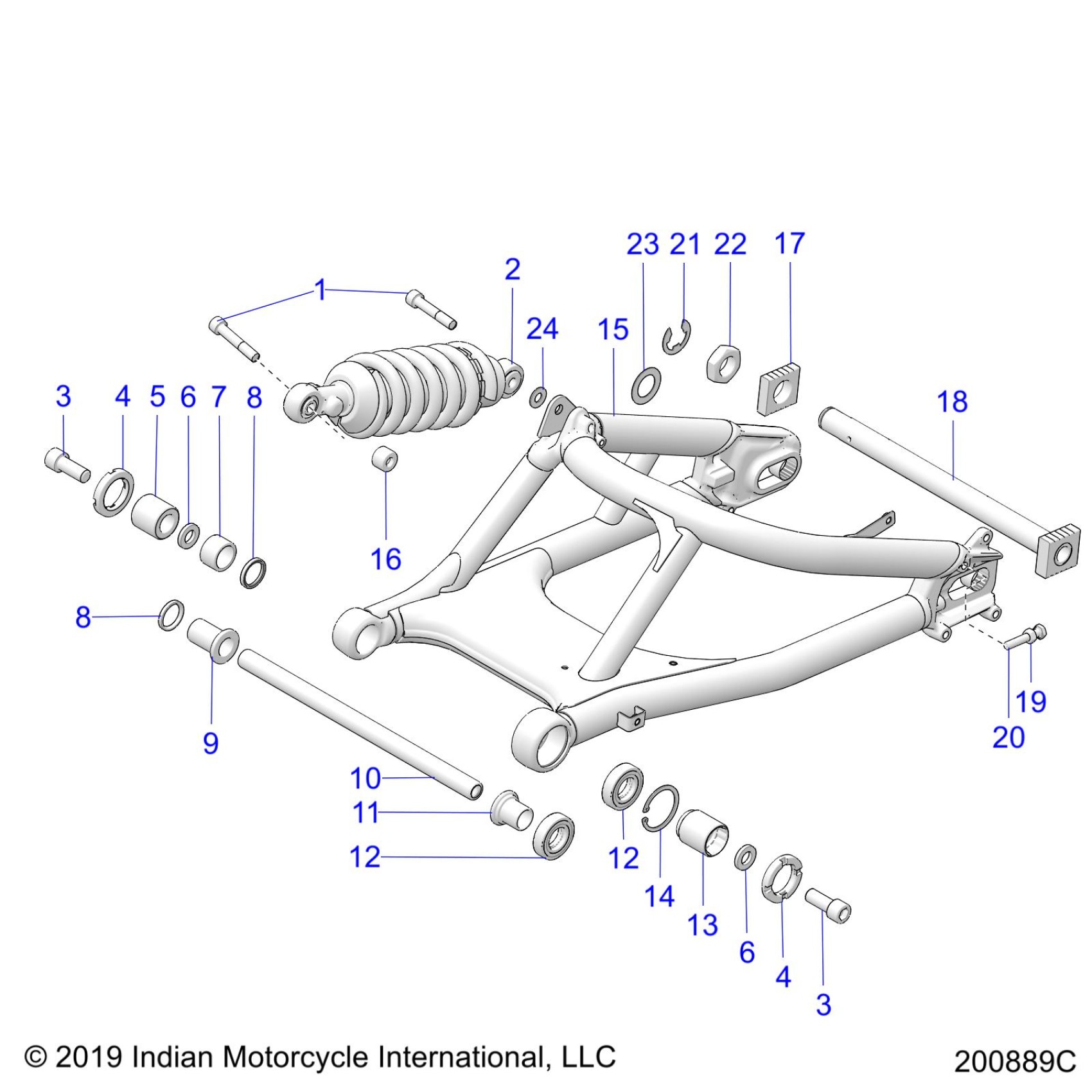 Polaris FTR 1200 RALLY (R05) - N20RTT22A9/B9/C9/E9 SUSPENSION,REAR SWING ARM/SHOCK - N20RTT22 (200889C) Diagram
