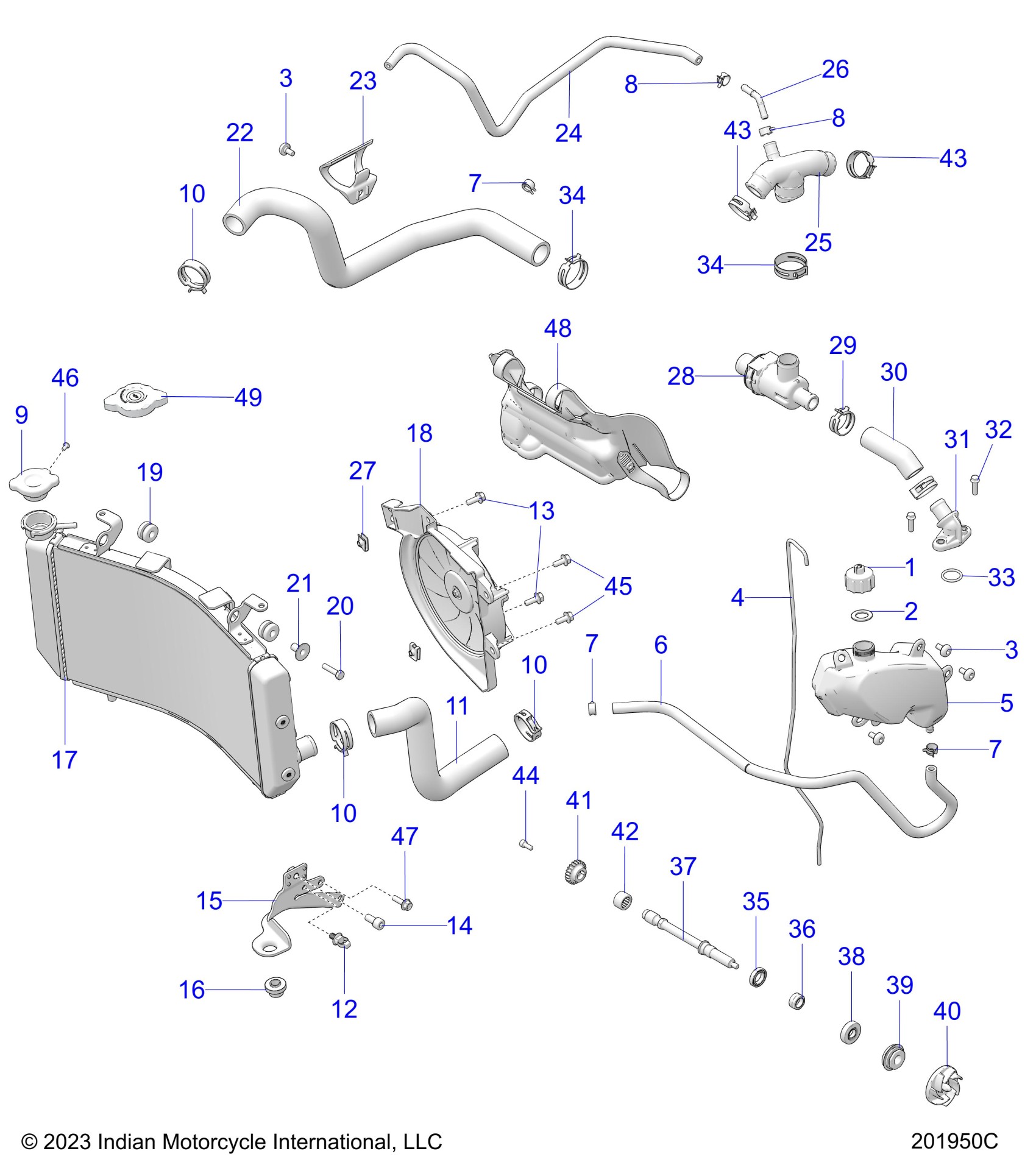 Polaris FTR X 100% R CARBON (R01) - N24FZU22JM/PM/RZU22AM/BM/CM/EM ENGINE, COOLING - N24RZU22/FZU22 (201950C) Diagram