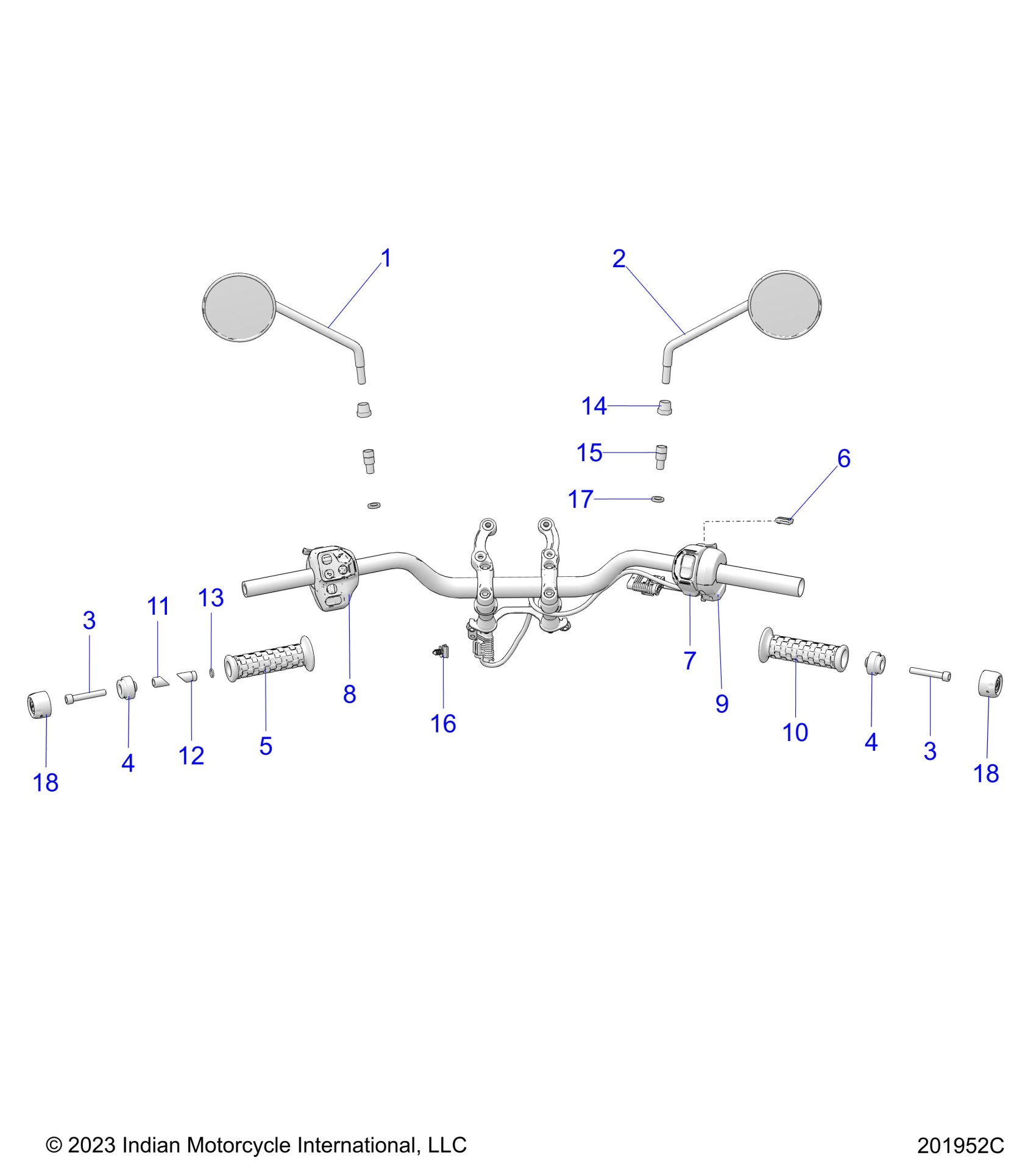 Polaris FTR X RSD SUPER HOOLIGAN (R01) - N24FZV22JR/PR/RZV22AR/BR/CR/ER STEERING, HANDLEBAR ASSEMBLY - N24RZV22/FZV22 (201829C) Diagram