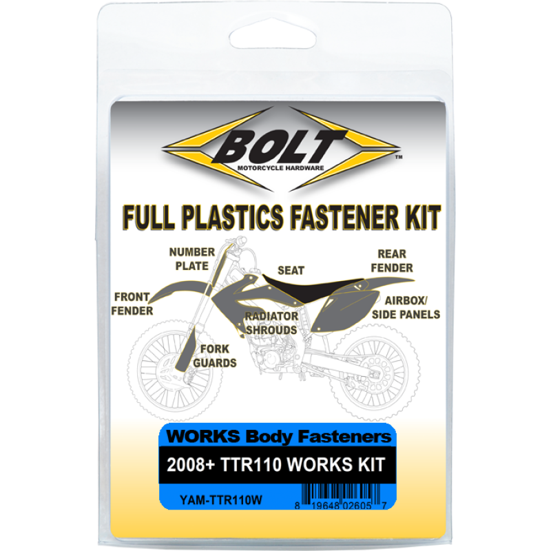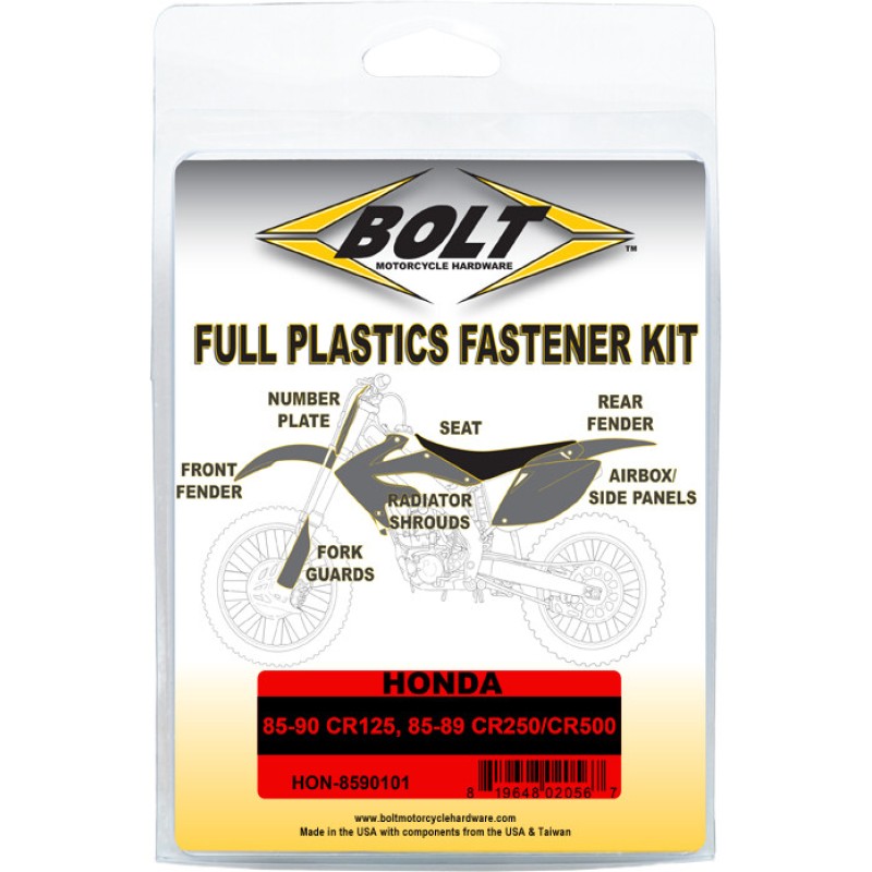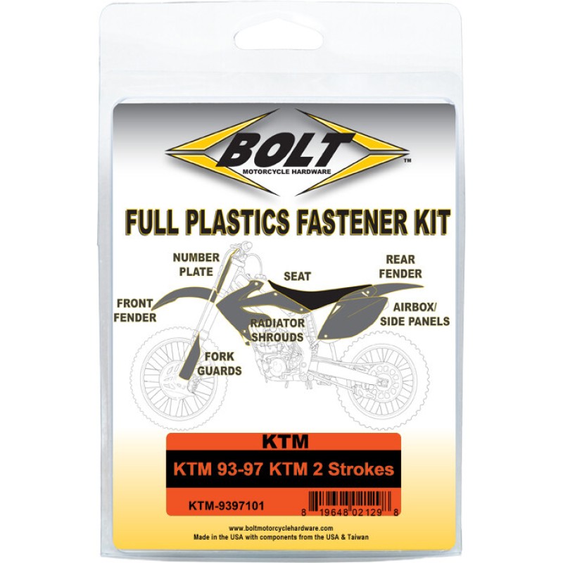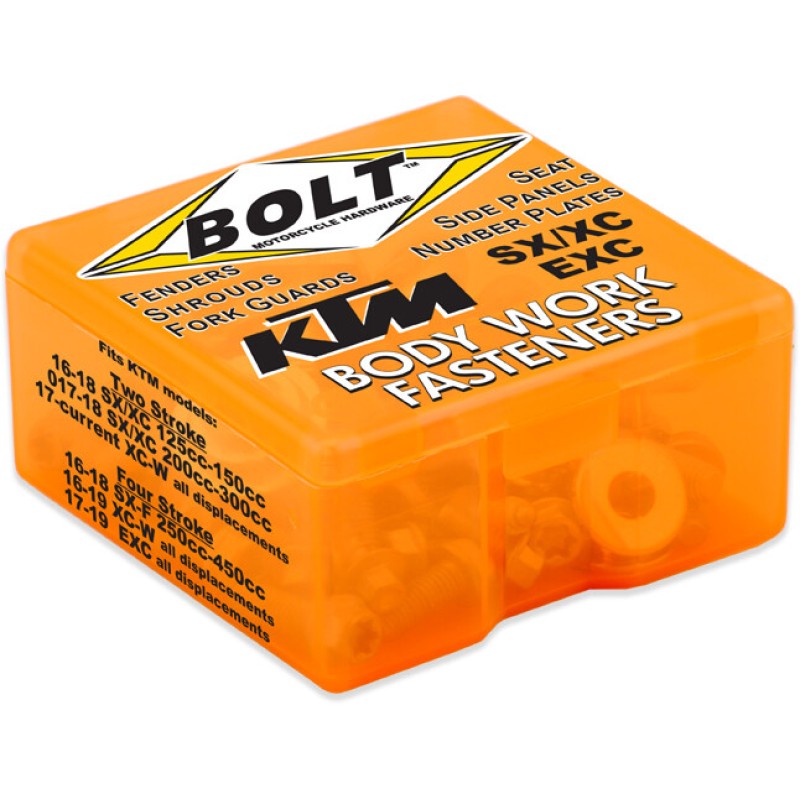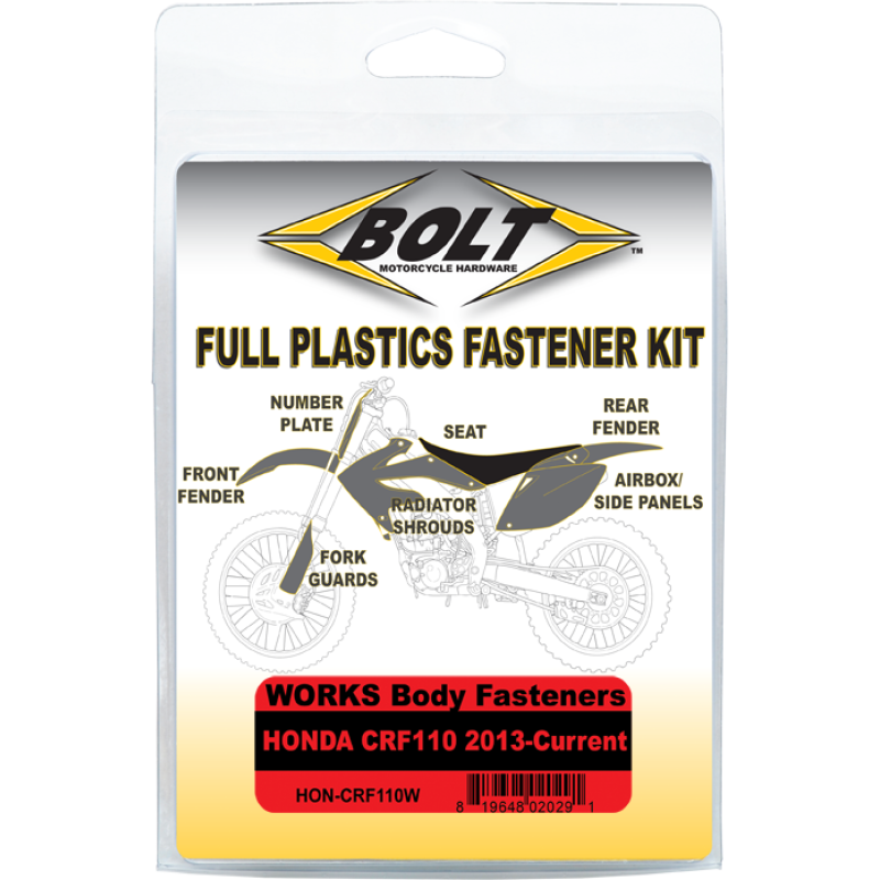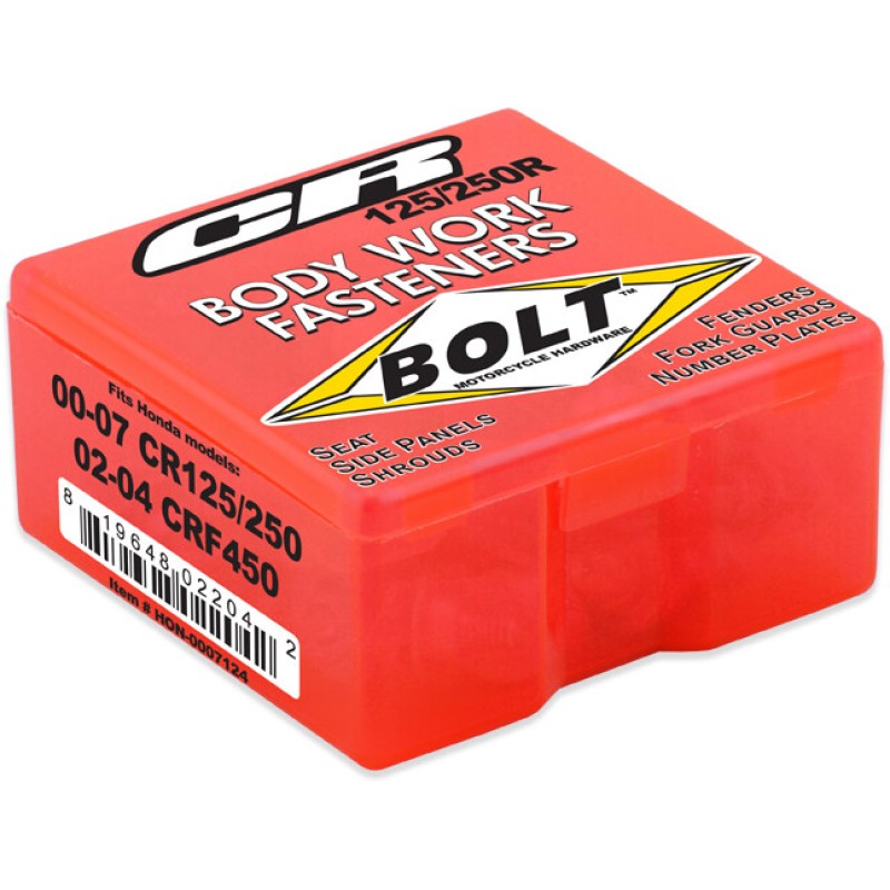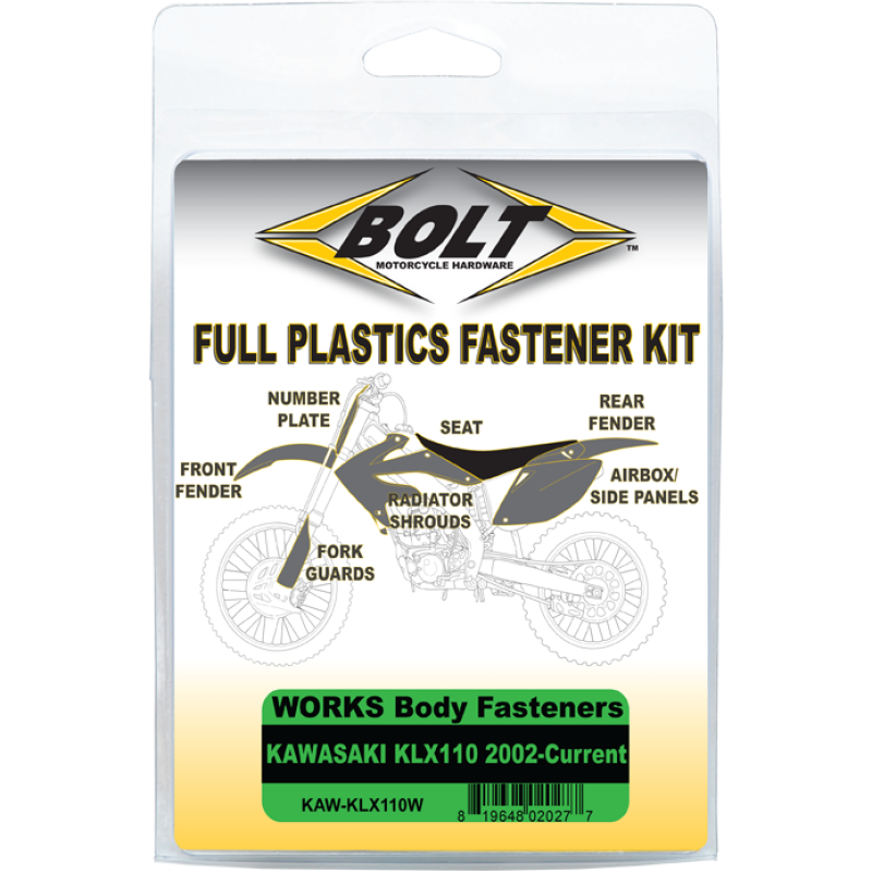 - Body Work Fastener Kits contain all the OEM match fasteners and bushings to install your plastics including front and rear fenders, fork guards, radiator shrouds, side covers, and number plates
