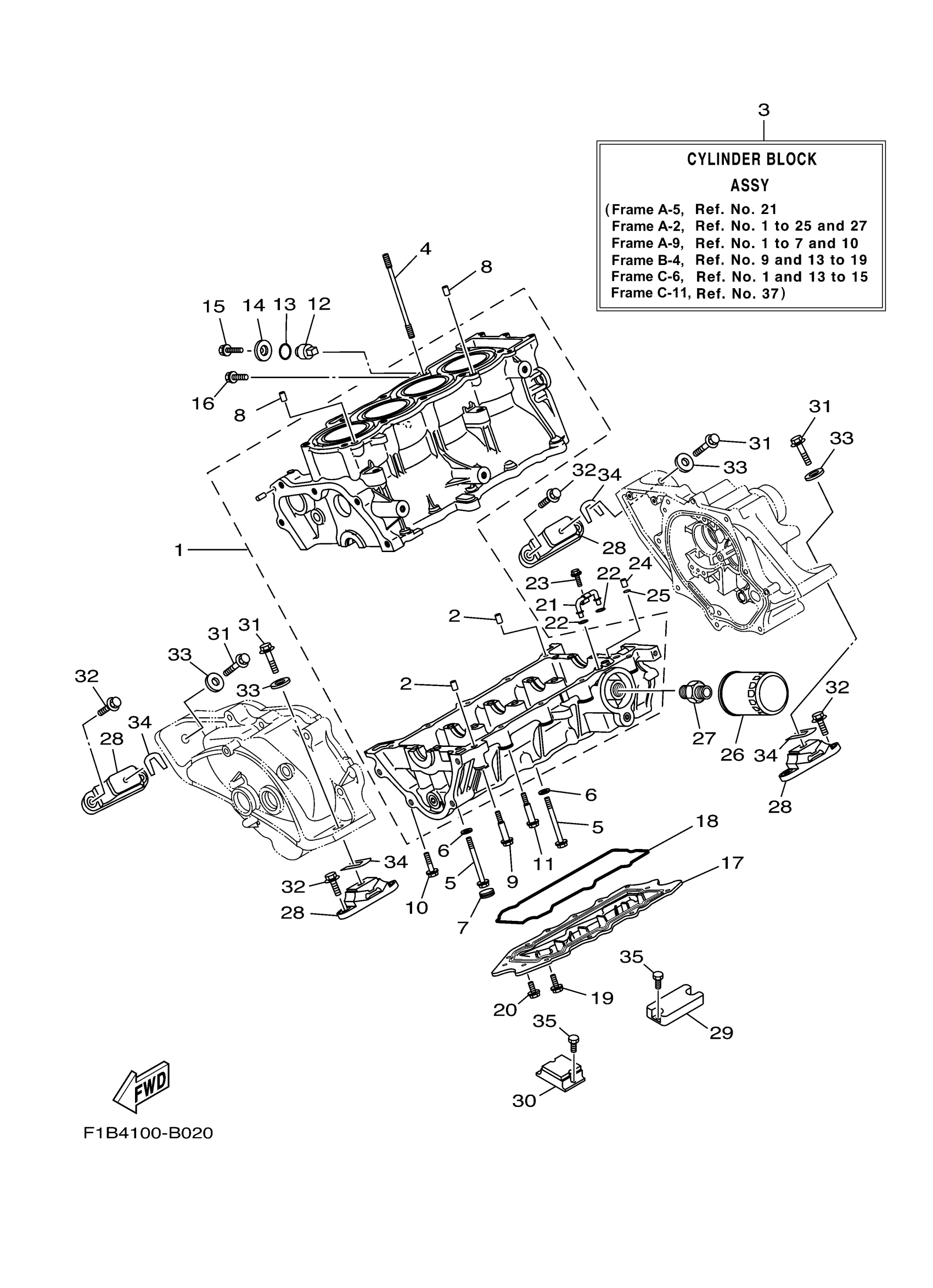 Yamaha FX1000ACB (FX140 CRUISER) F1B71 2003 CRANKCASE Diagram