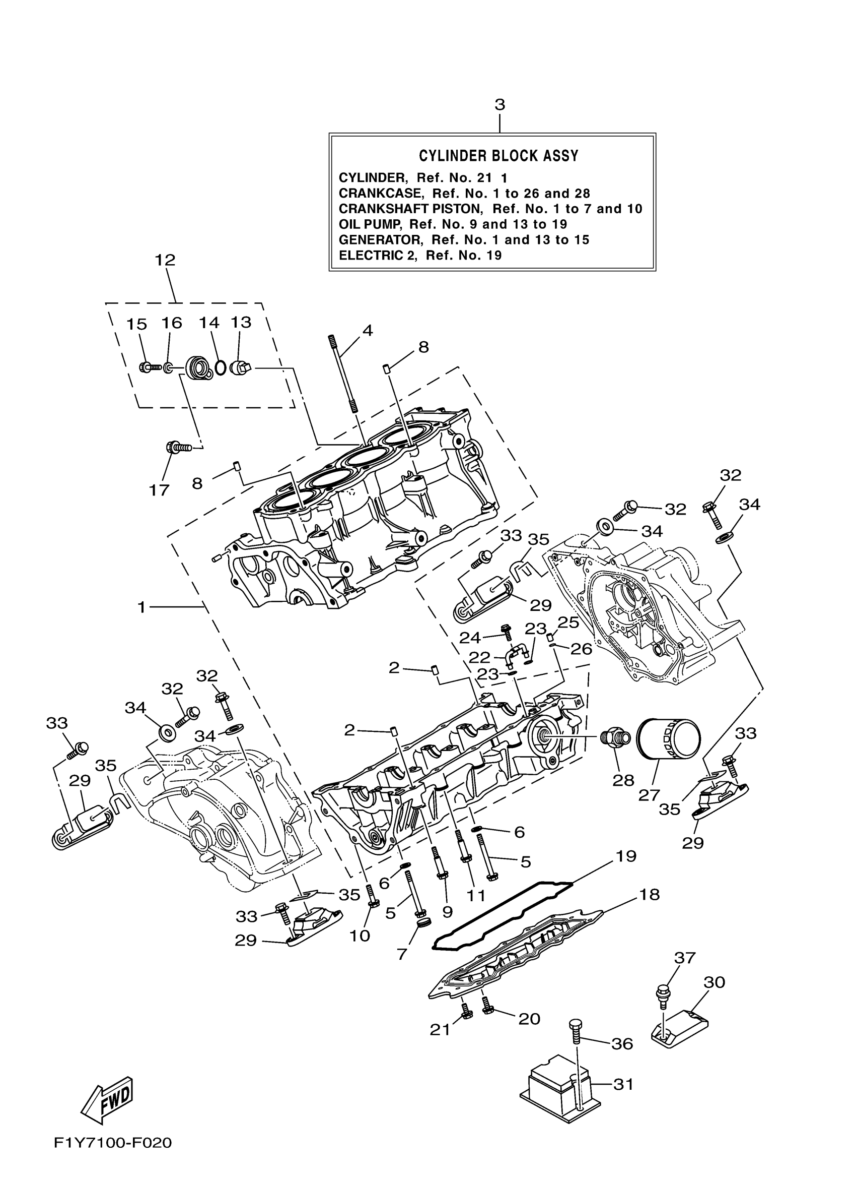 Yamaha FX1000F (WaveRunner FX) F1Y8 2007 CRANKCASE Diagram