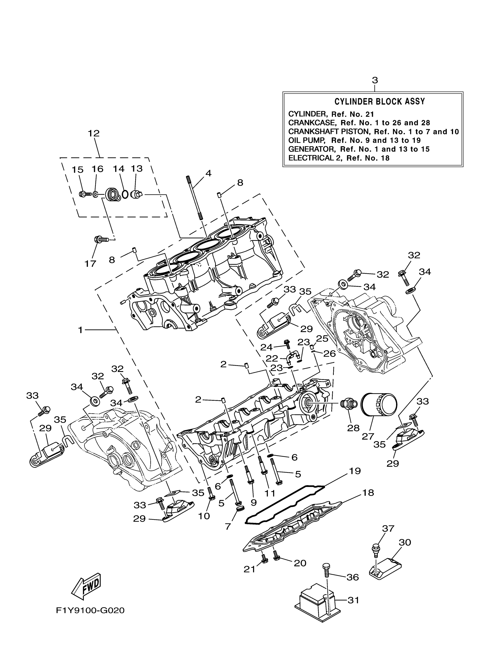 Yamaha FX1000G (WaveRunner FX) F1YA 2008 CRANKCASE Diagram