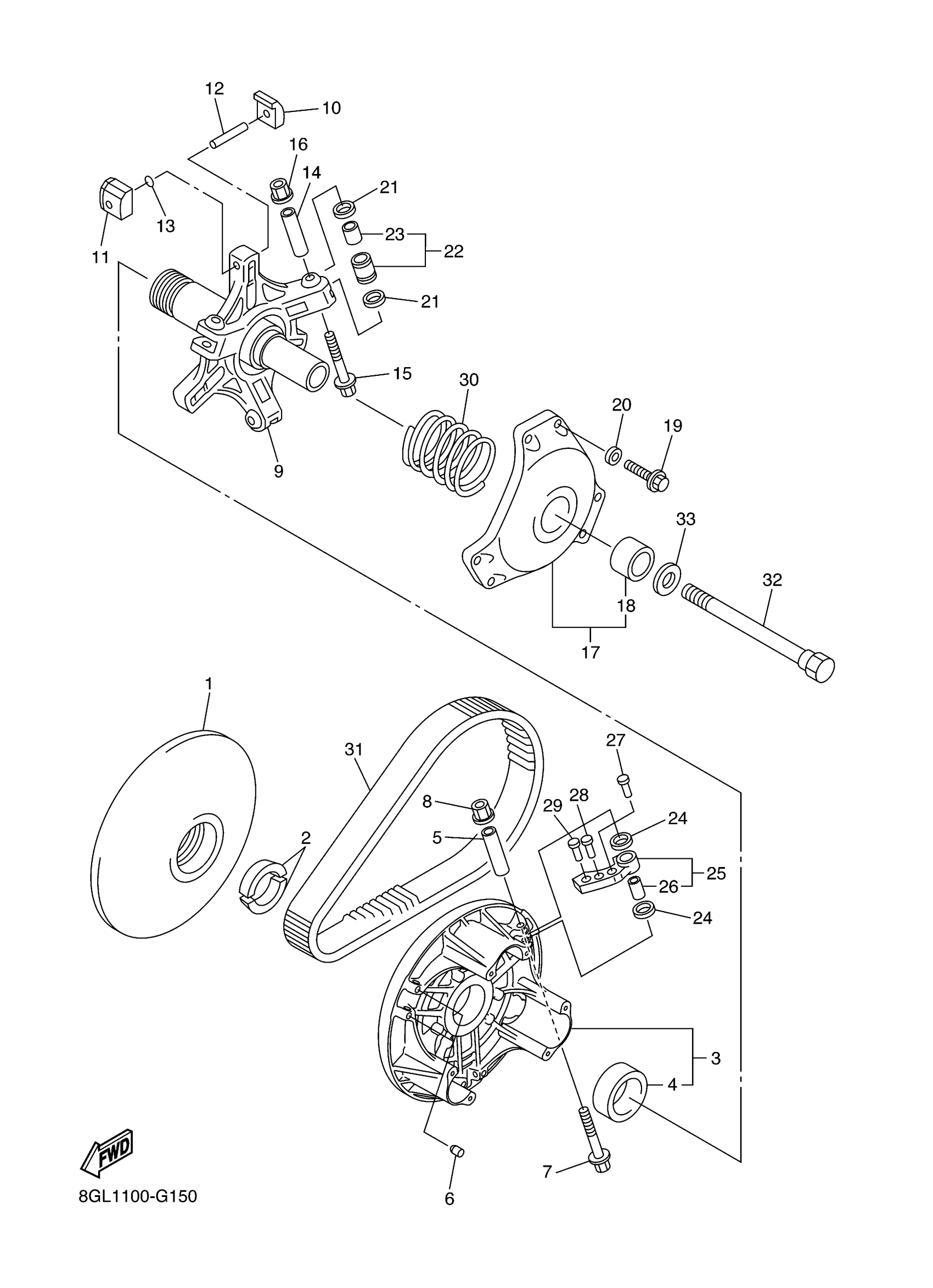 Yamaha FX10XTZW (FX NYTRO XTX) 8HL30 2010 PRIMARY SHEAVE Diagram