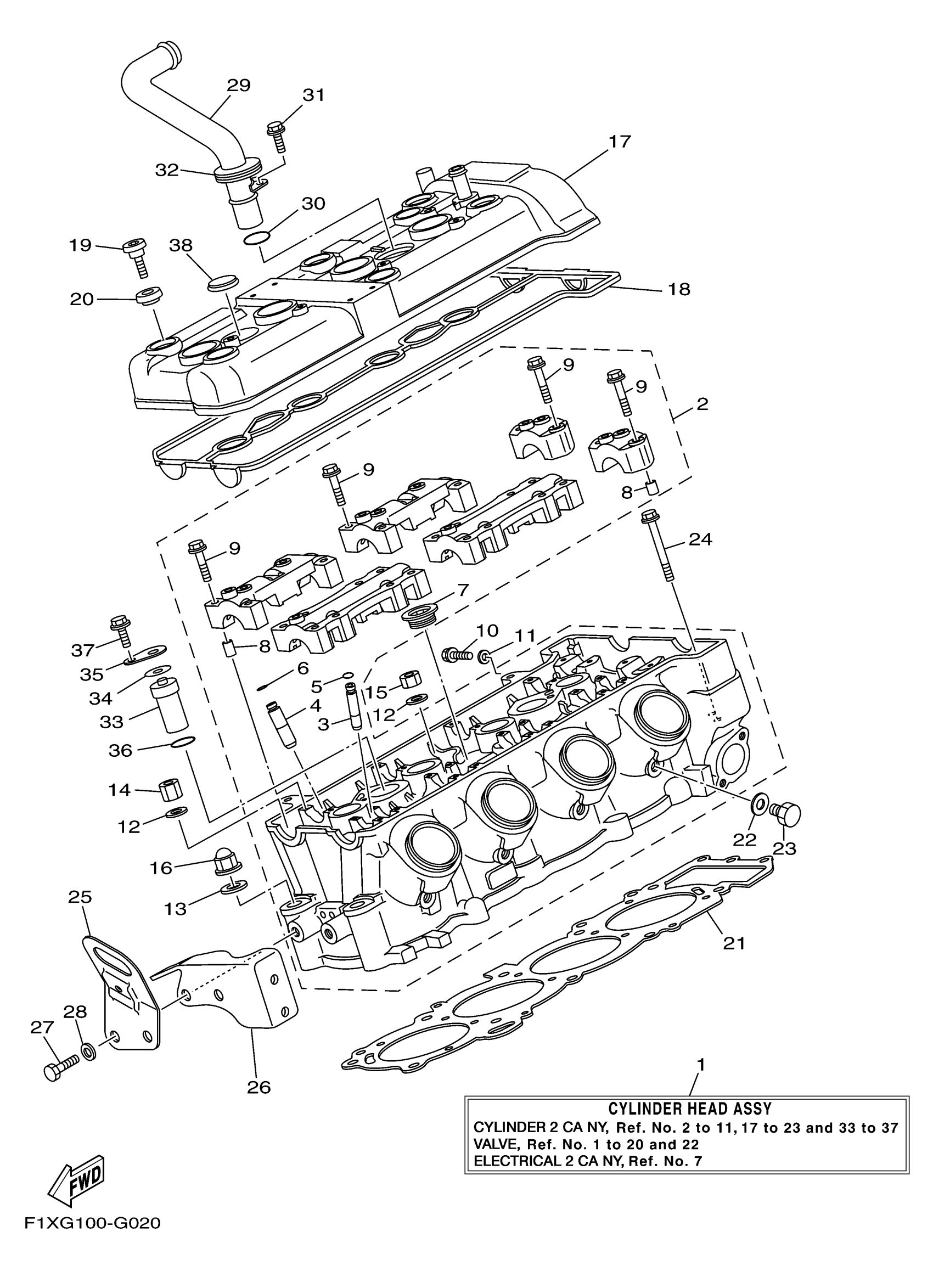 Yamaha FX1100ALG (WaveRunner FX Cruiser High Output CA) F1XJ 2008 CYLINDER 2 CA NY Diagram