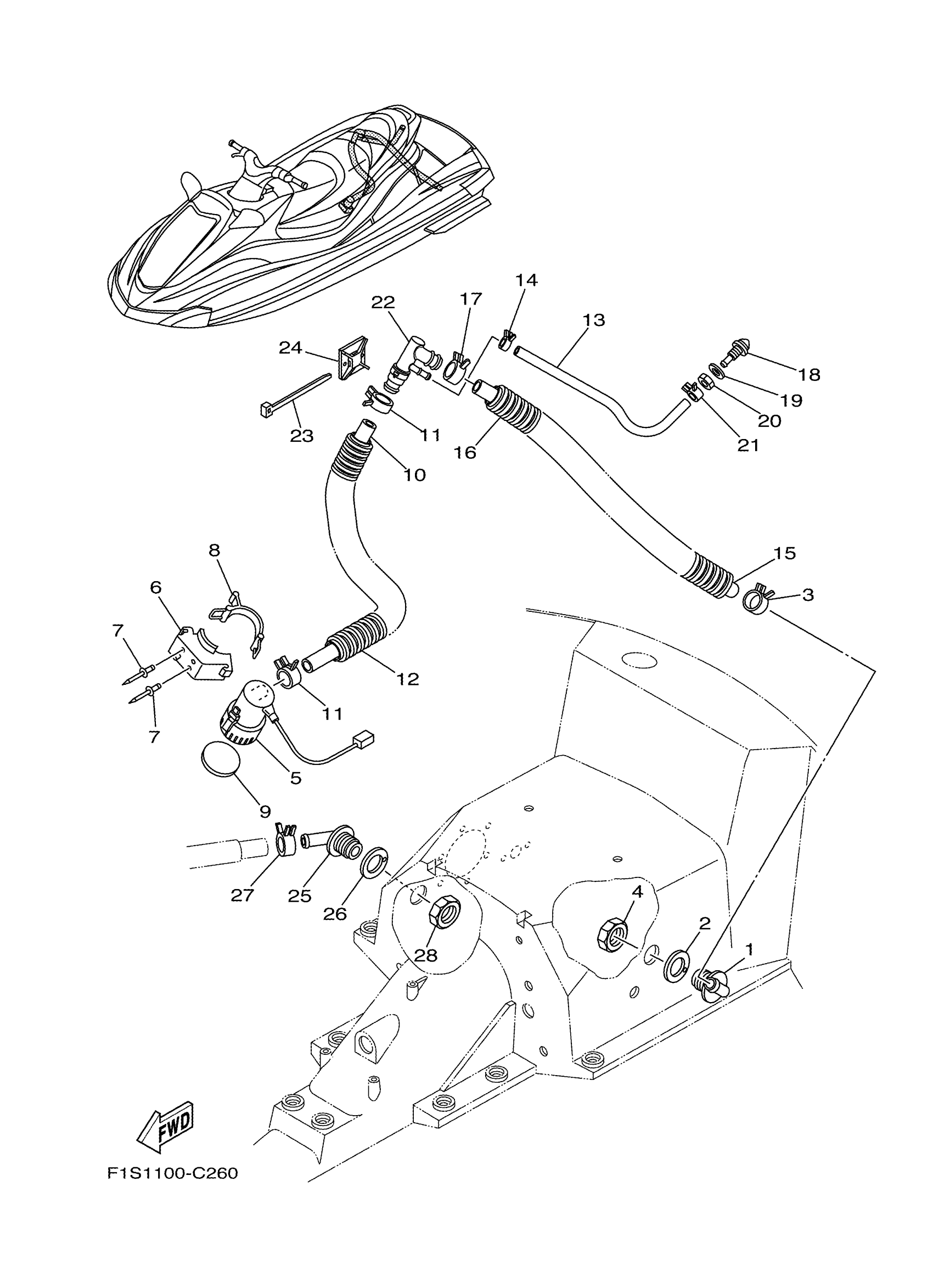 Yamaha FX1100D (WaveRunner FX High Output) F1S7 2005 BILGE PUMP Diagram