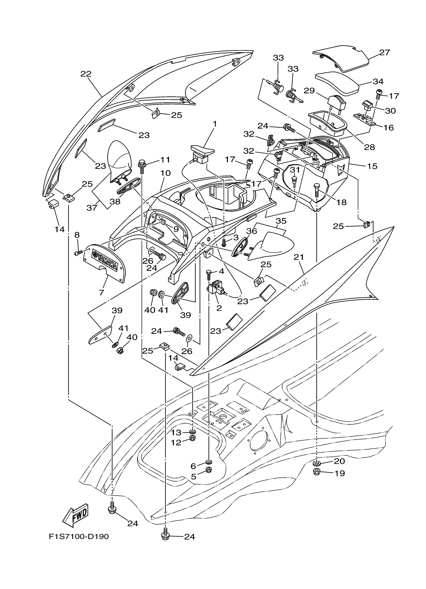 Yamaha FX1100D (WaveRunner FX High Output) F1S7 2005 ENGINE HATCH 1 Diagram
