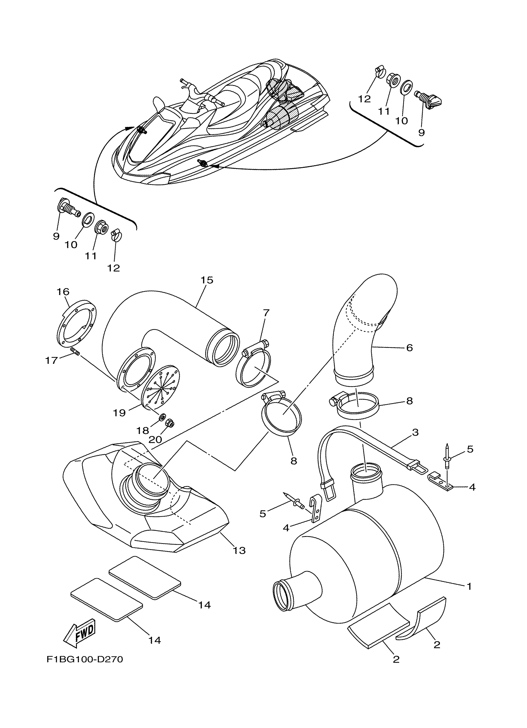 Yamaha FX1100D (WaveRunner FX High Output) F1S7 2005 EXHAUST 3 Diagram