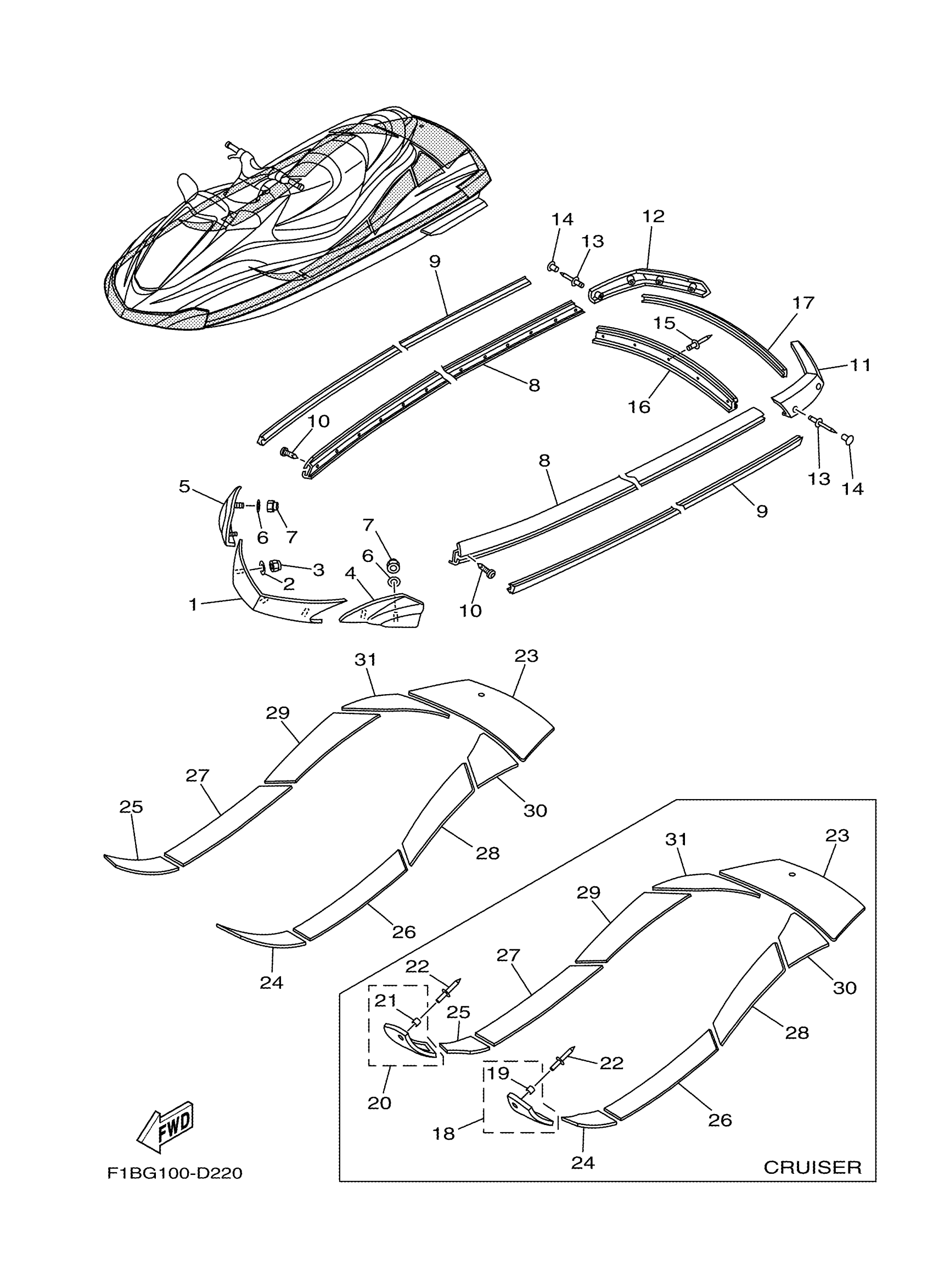 Yamaha FX1100D (WaveRunner FX High Output) F1S7 2005 GUNWALE MAT Diagram