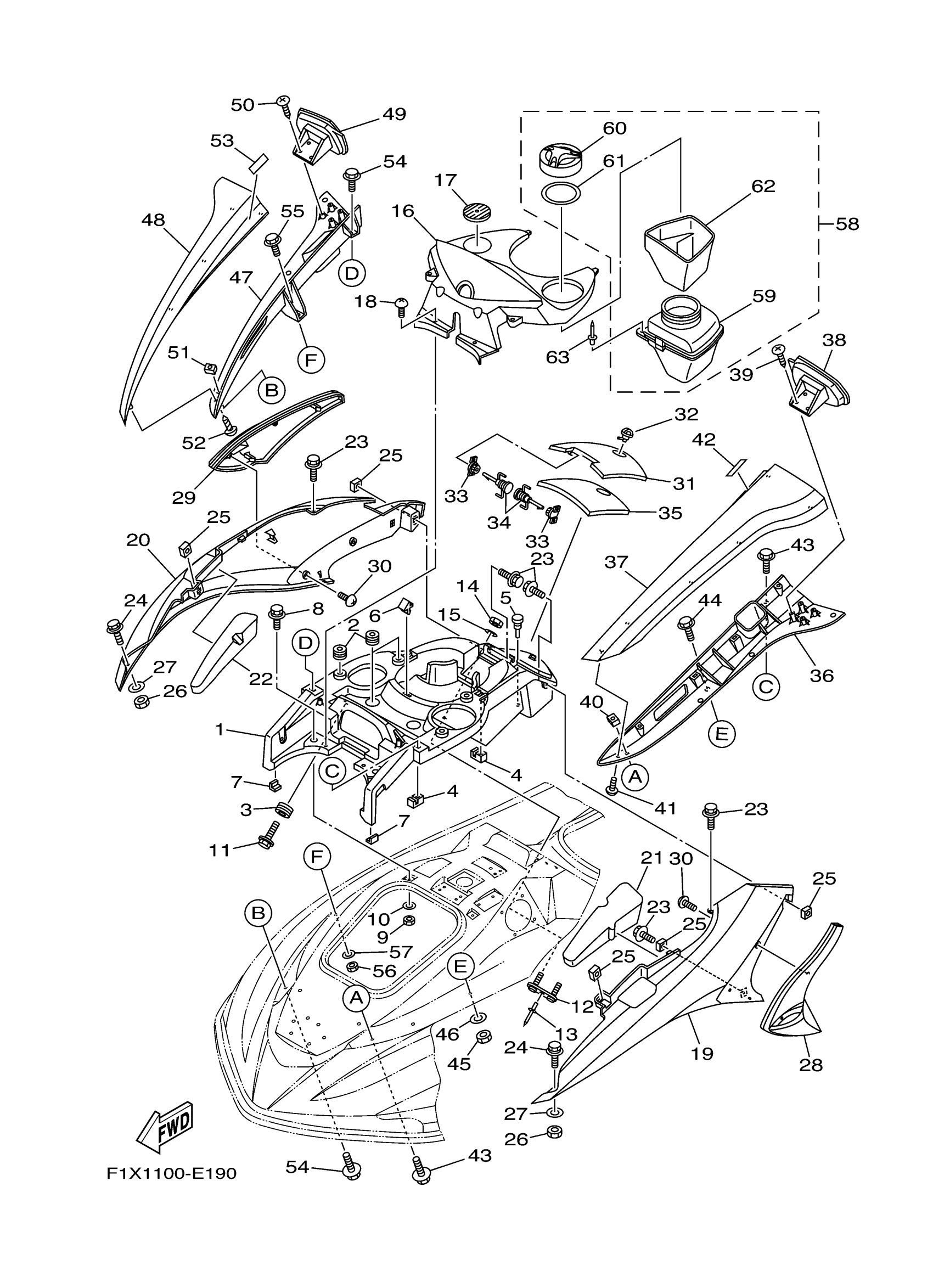 Yamaha FX1100E (FX High Output) F1X4 2006 ENGINE HATCH 1 Diagram