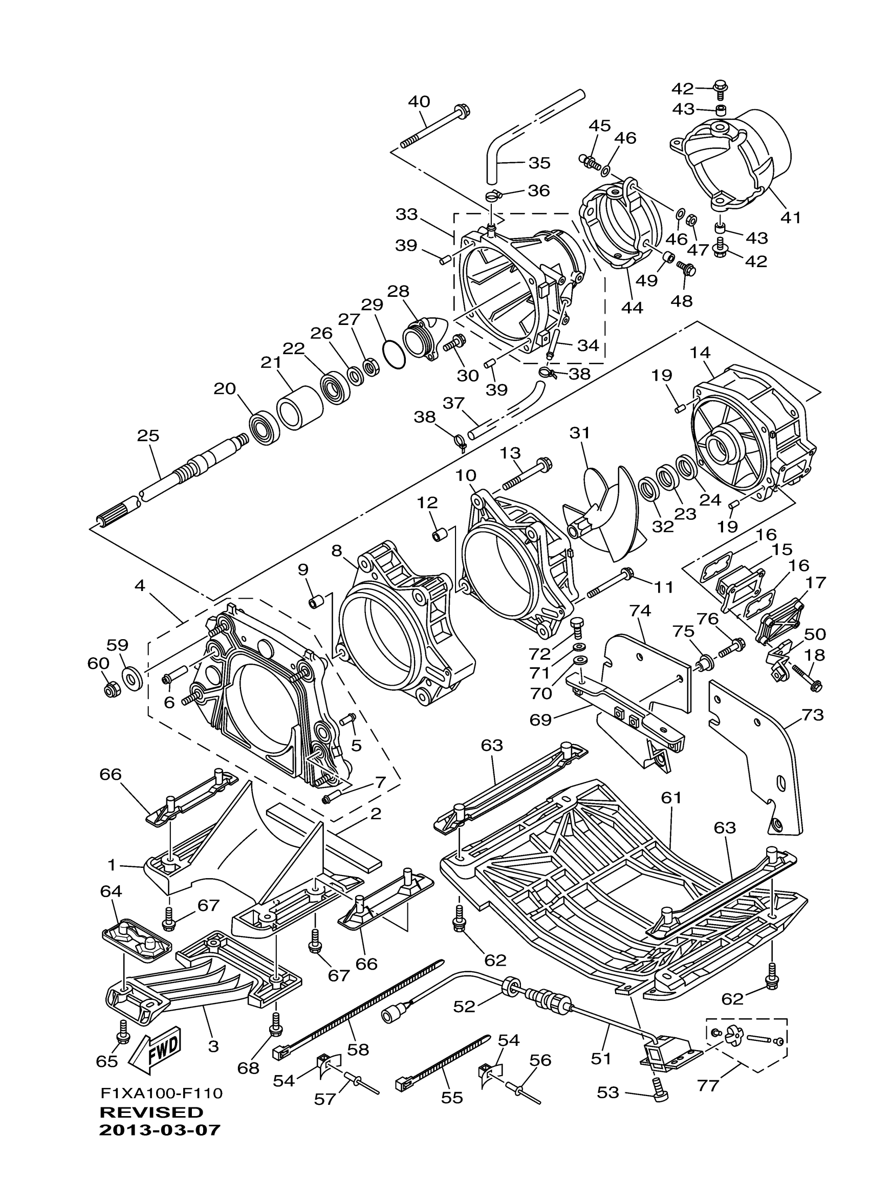 Yamaha FX1100F (WaveRunner FX HO) F1XD 2007 JET UNIT 1 Diagram