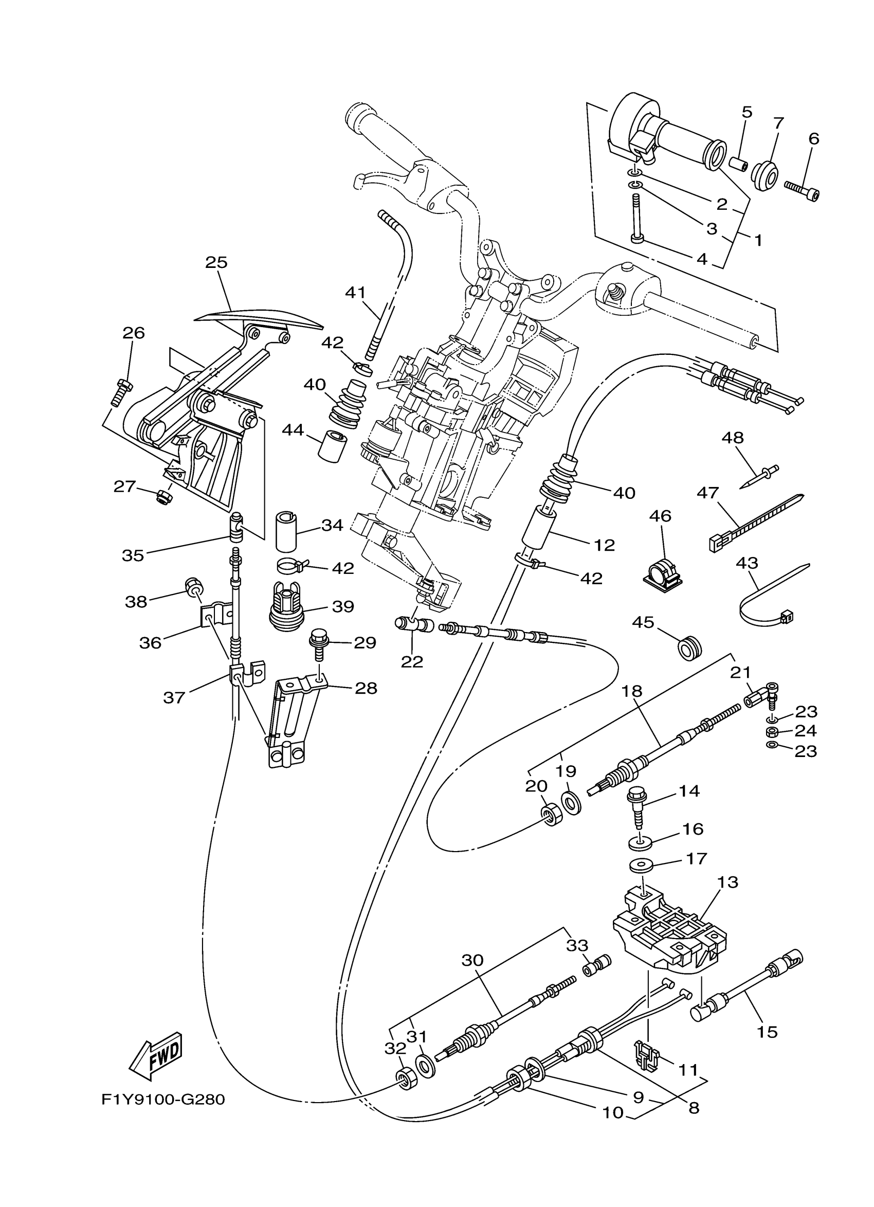 Yamaha FX1100LG (WaveRunner FX High Output CA) F1XN 2008 CONTROL CABLE Diagram