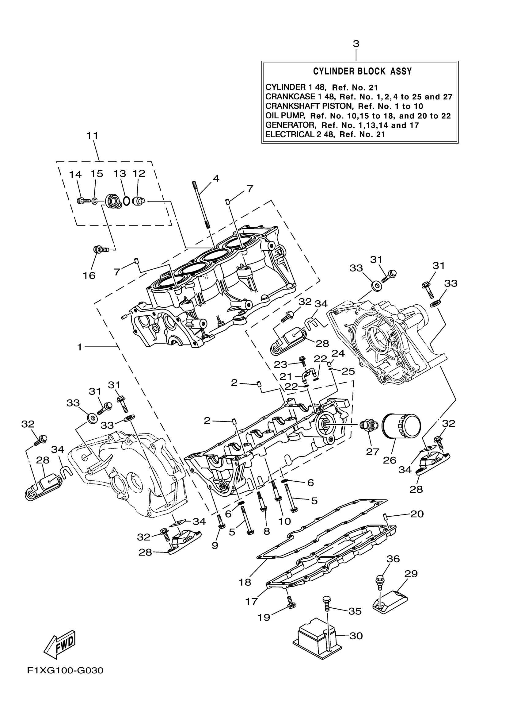 Yamaha FX1100LG (WaveRunner FX High Output CA) F1XN 2008 CRANKCASE 1 48 Diagram