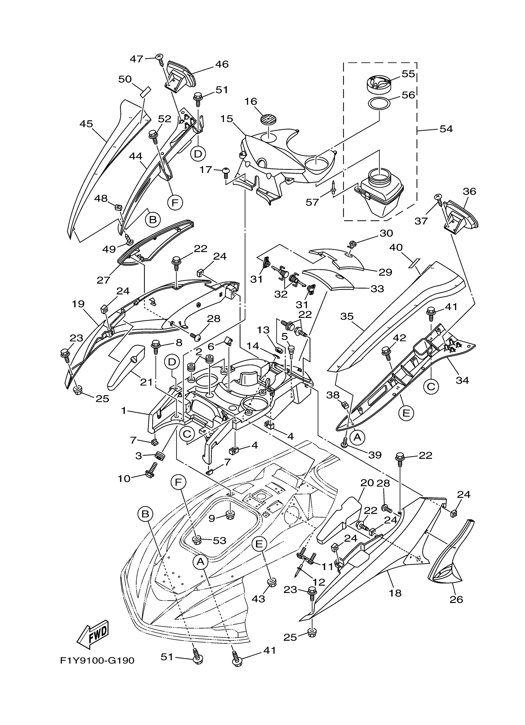Yamaha FX1100LG (WaveRunner FX High Output CA) F1XN 2008 ENGINE HATCH 1 Diagram