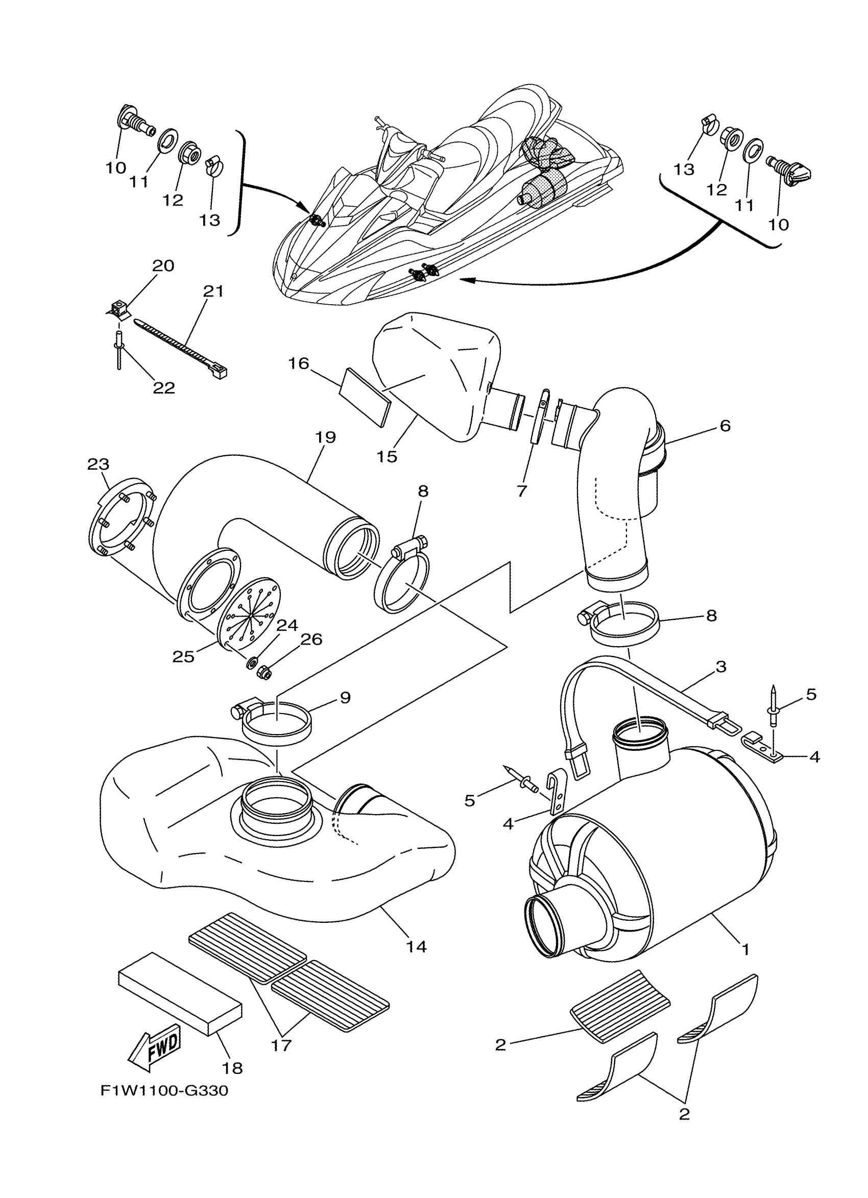 Yamaha FX1800HK (WAVERUNNER FX SHO) FIWA0 2009 EXHAUST 3 Diagram