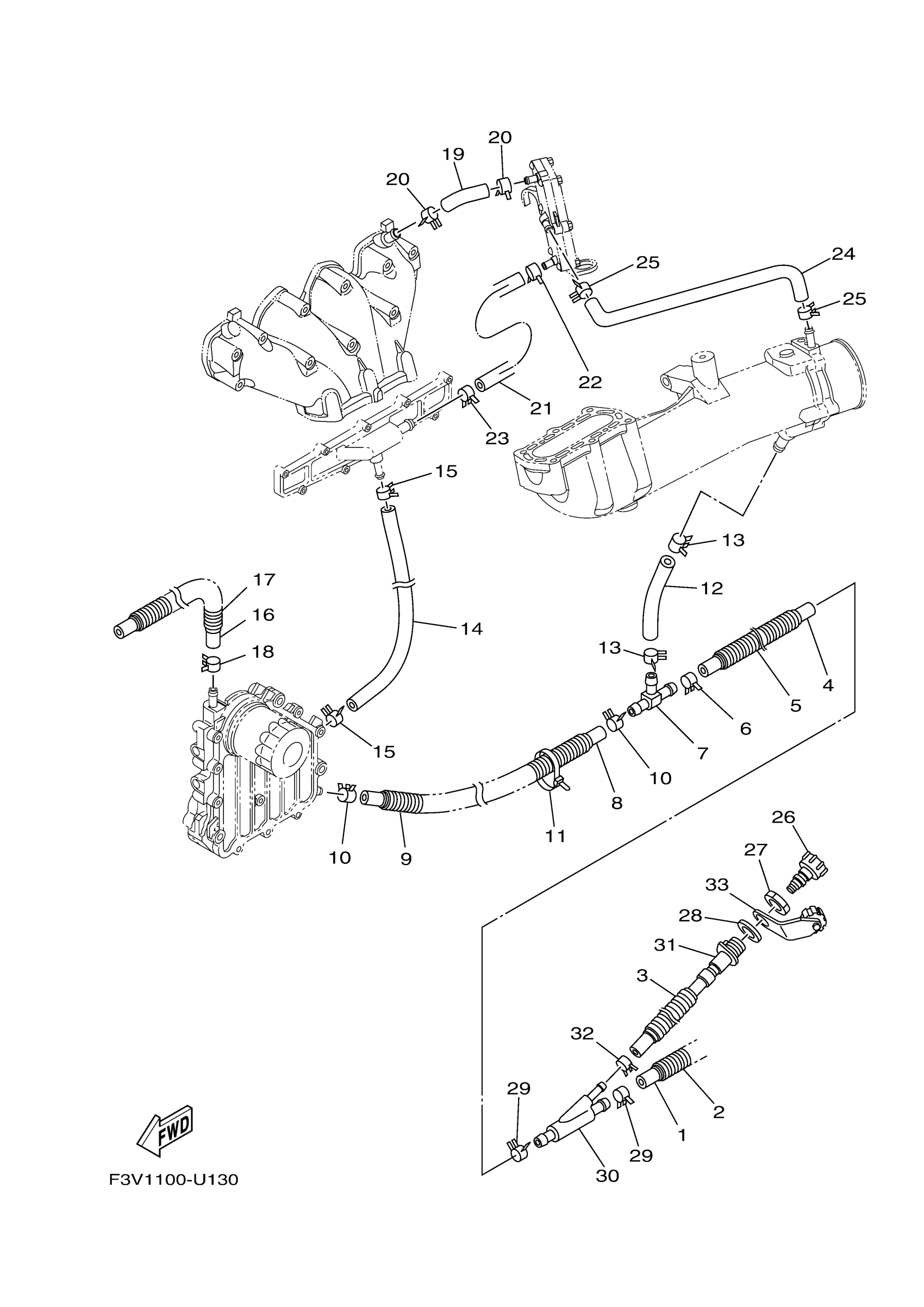 Yamaha FX1800JX (FX HO WITH AUDIO_FX HO) F3VA 2022 EXHAUST 2 Diagram