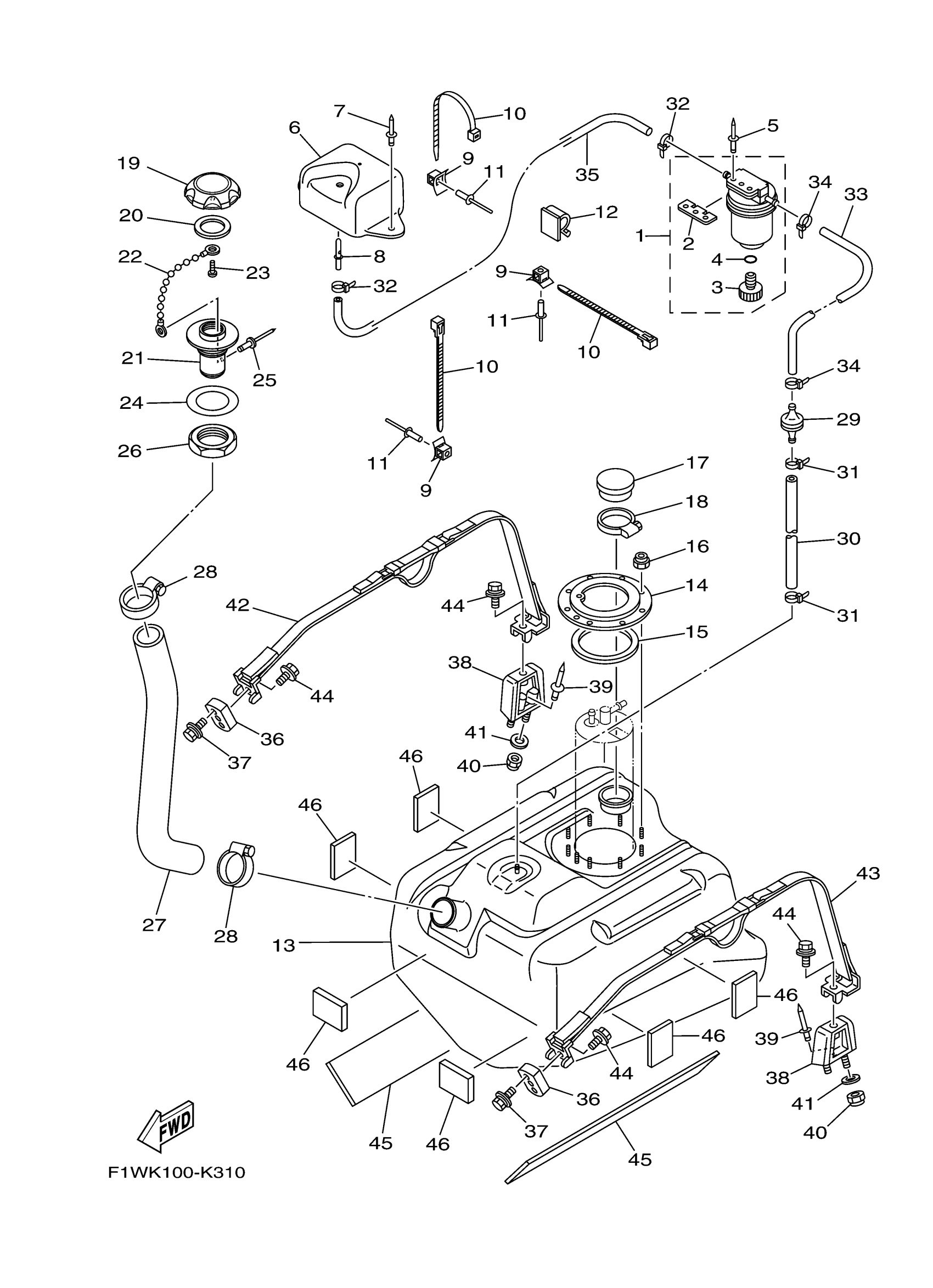 Yamaha FX1800K (FX SUPER HIGH OUTPUT) F1WN 2011 FUEL TANK Diagram