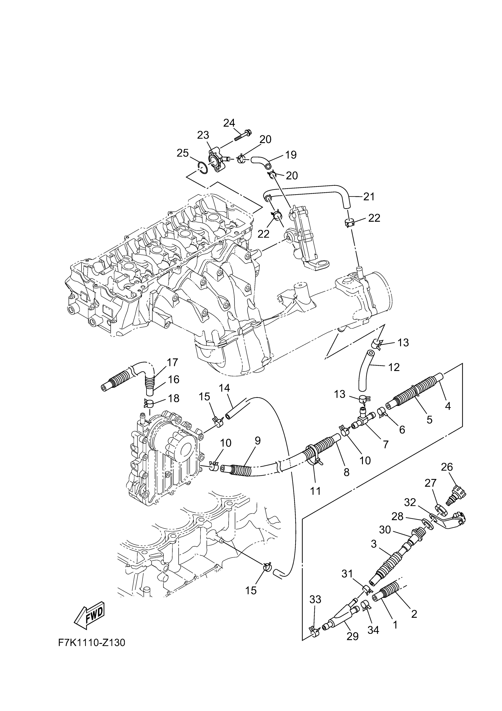 Yamaha FX1900CA (FX HO WAUDIO_ FX HO) F7K3 2024 EXHAUST 2 Diagram