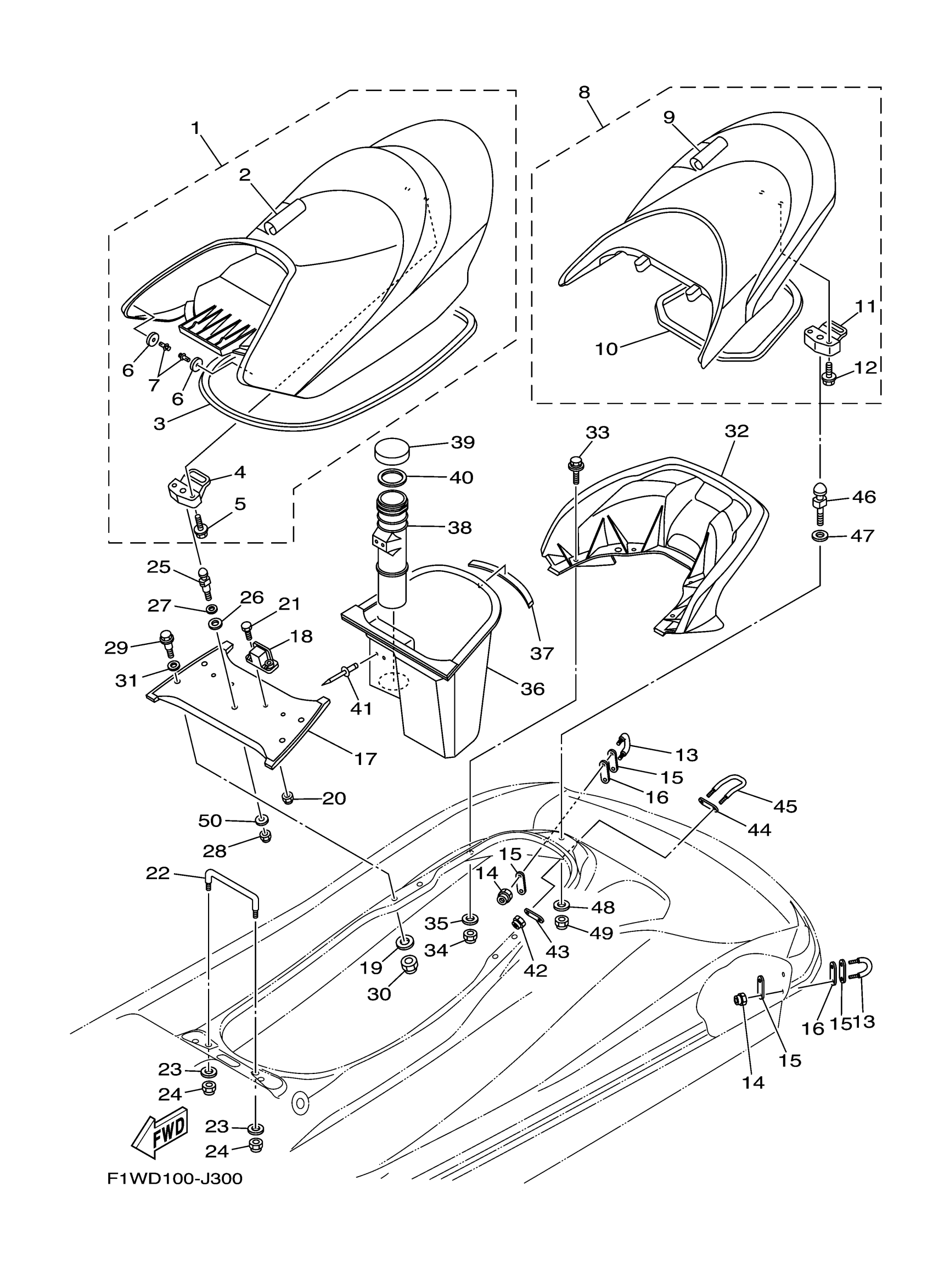 Yamaha FY1800AJ (FX CRUISER HO) F2H7 2010 SEAT & UNDER LOCKER Diagram