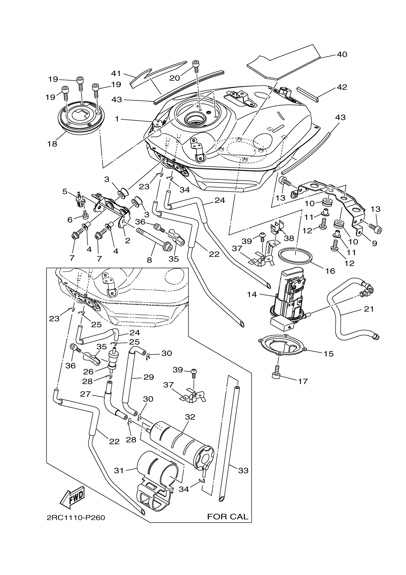 Yamaha FZ07AHR (FZ07 ABS) BU25 2017 FUEL TANK Diagram