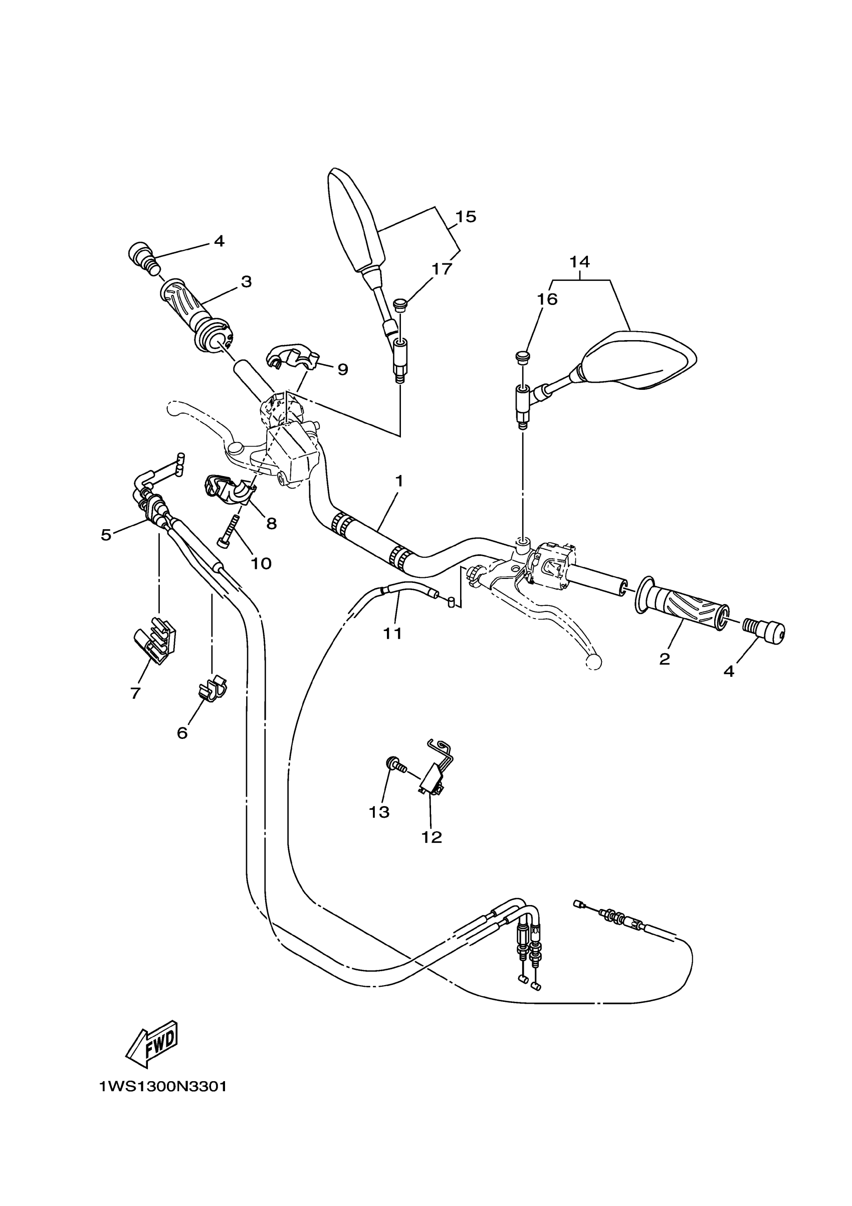 Yamaha FZ07FW (FZ07) 2RC11 2015 STEERING HANDLE CABLE Diagram