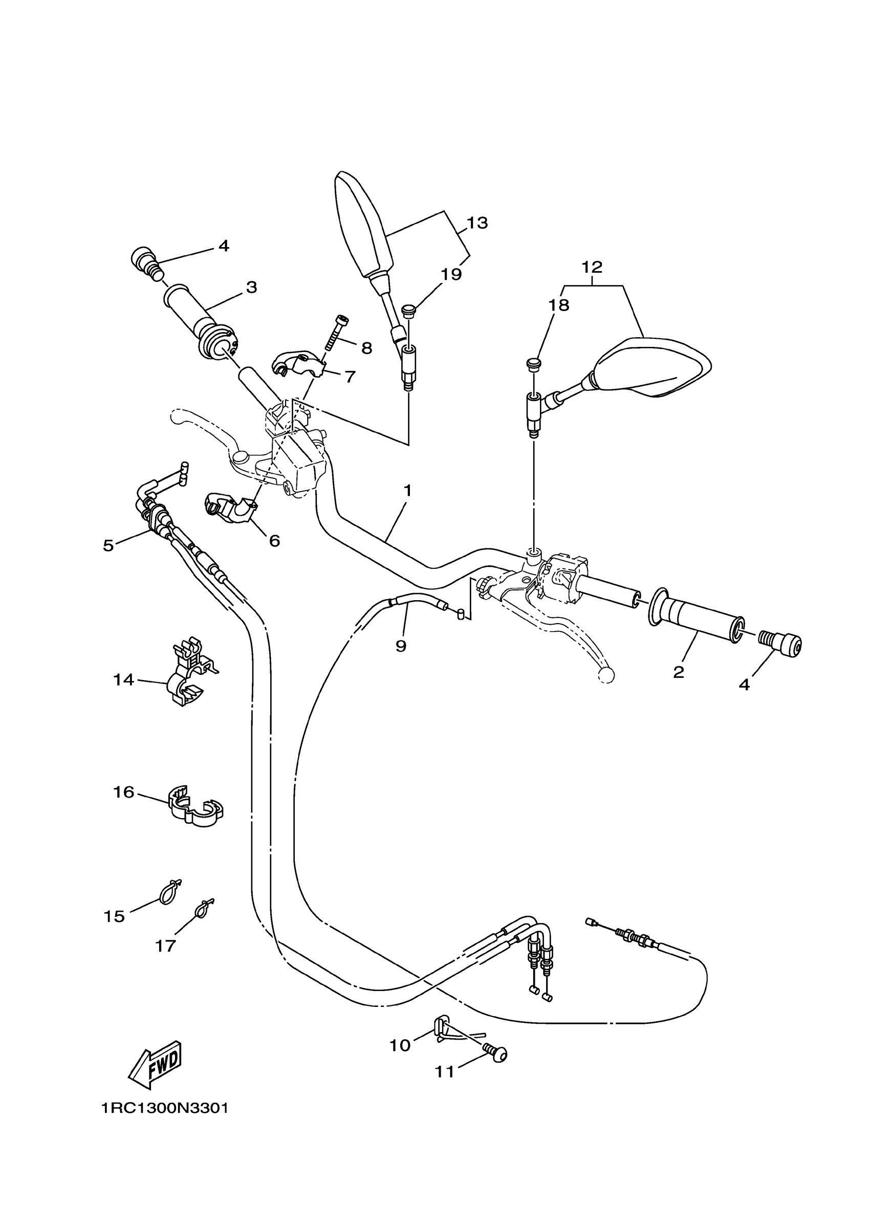 Yamaha FZ09ER (FZ09) 1RC41 2014 STEERING HANDLE CABLE Diagram