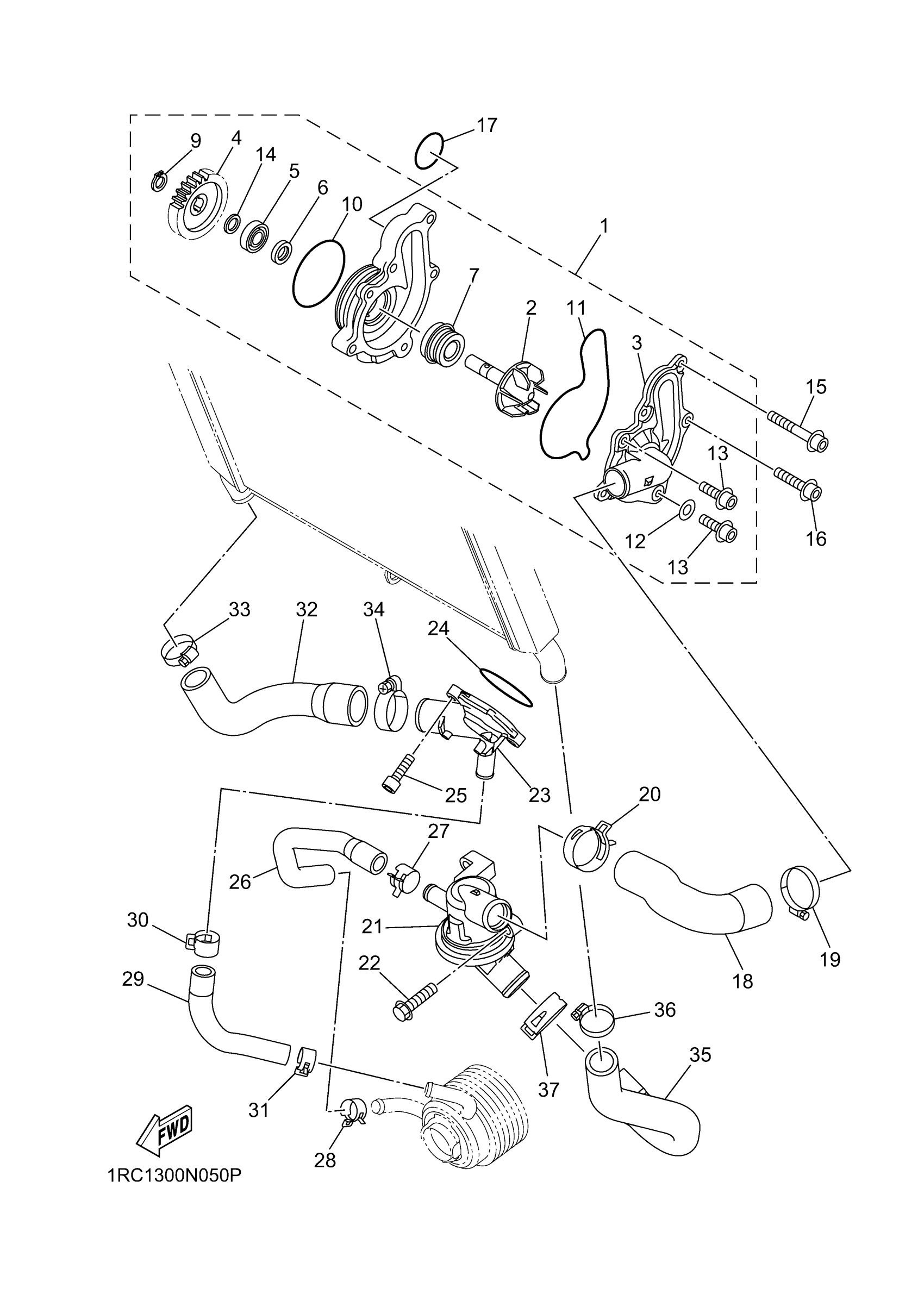 Yamaha FZ09ER (FZ09) 1RC41 2014 WATER PUMP Diagram