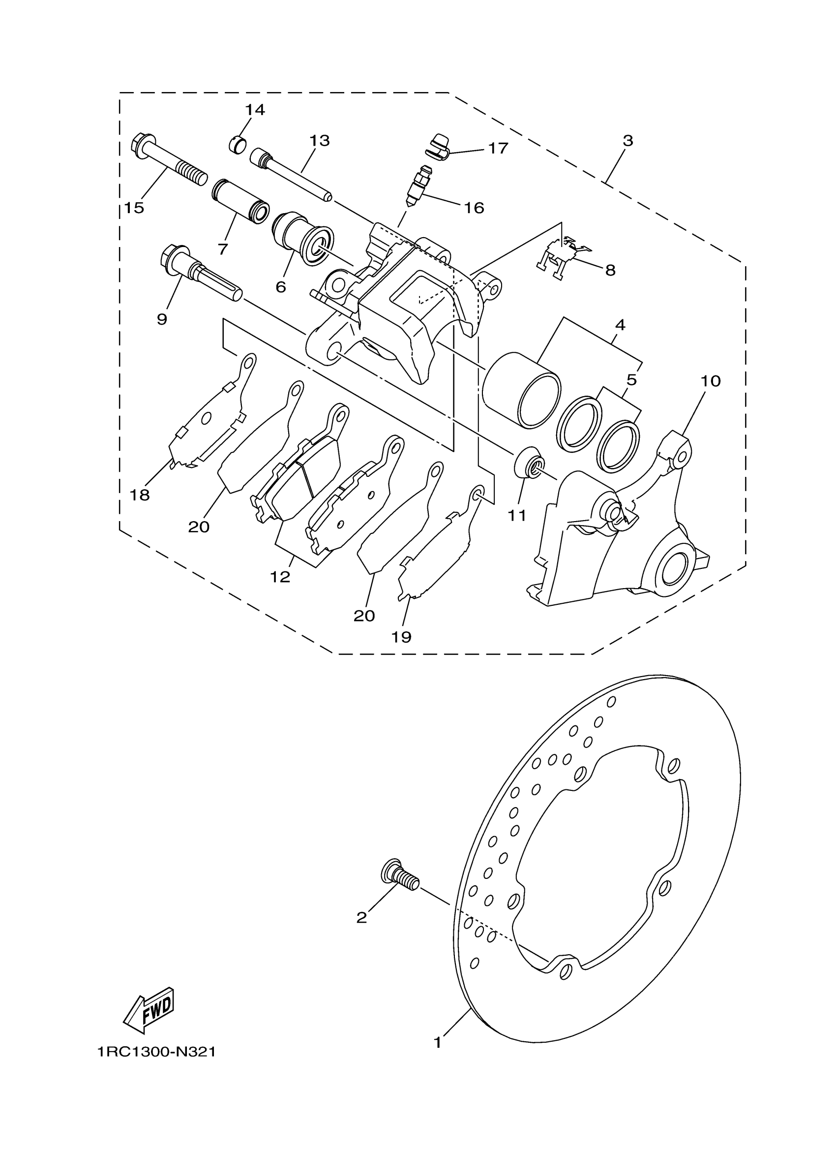 Yamaha FZ09FY (FZ09) 1RCT1 2015 REAR BRAKE CALIPER Diagram