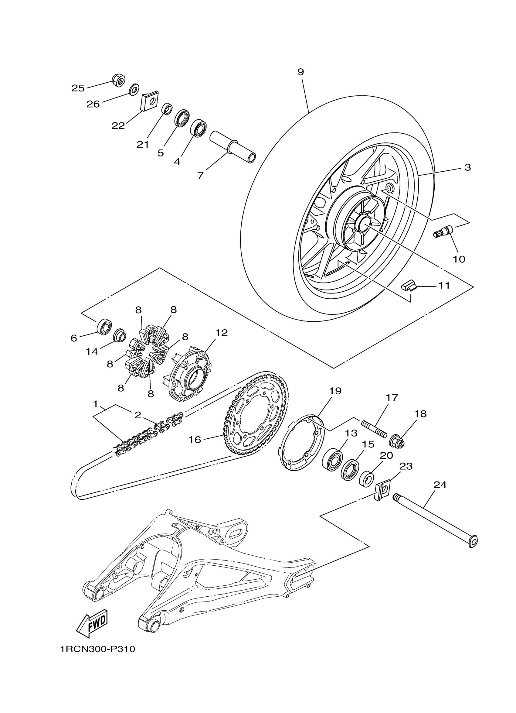 Yamaha FZ09FY (FZ09) 1RCT1 2015 REAR WHEEL Diagram