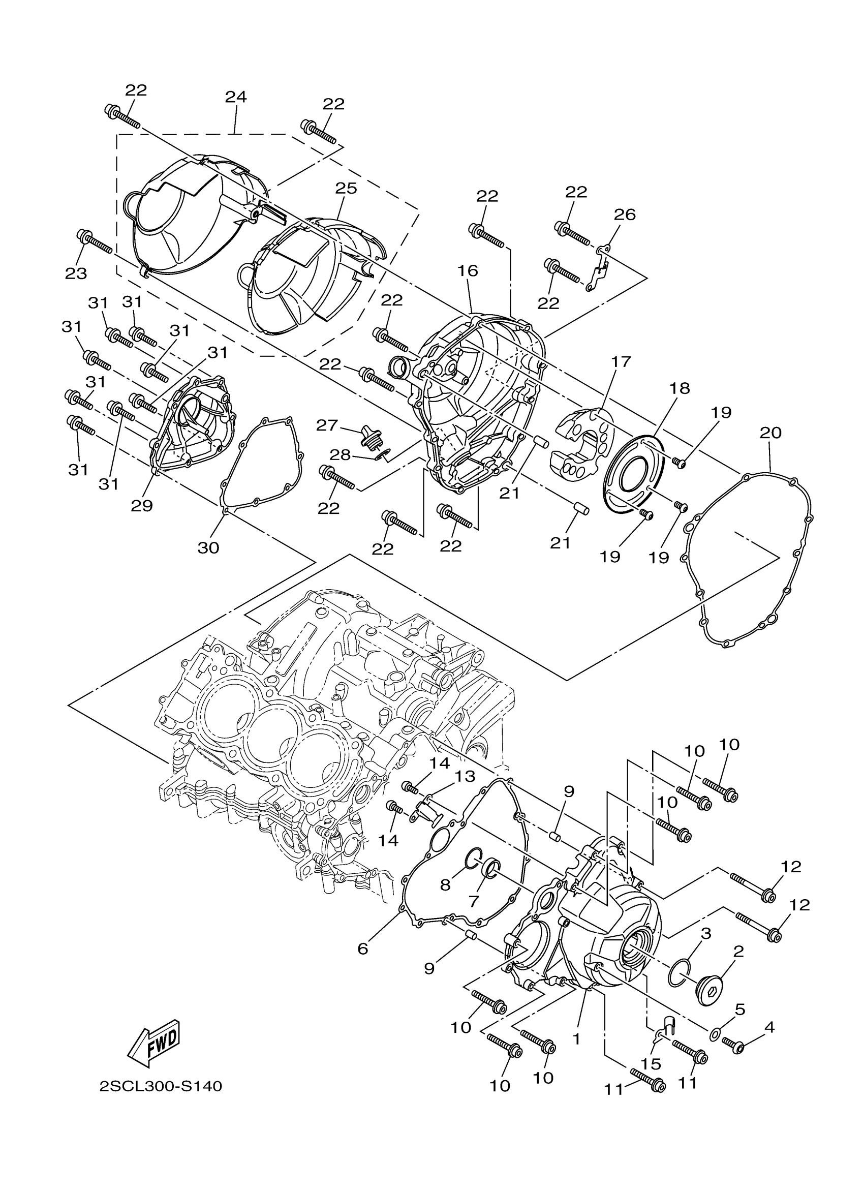 Yamaha FZ09HW (FZ09) BS2300 2017 CRANKCASE COVER 1 Diagram