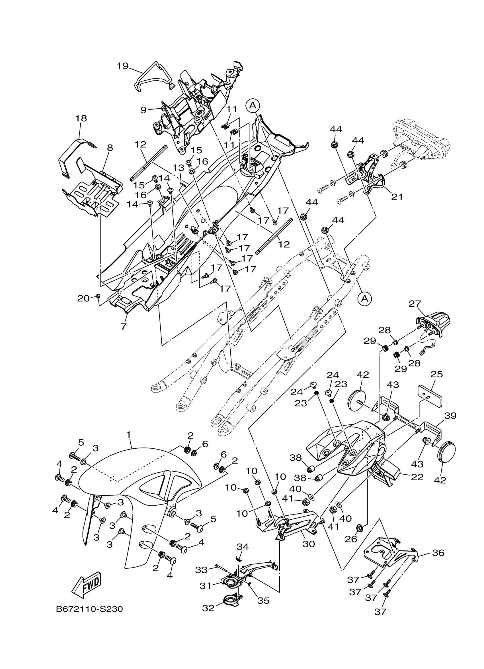 Yamaha FZ10HGY (FZ10) B6720 2017 FENDER Diagram