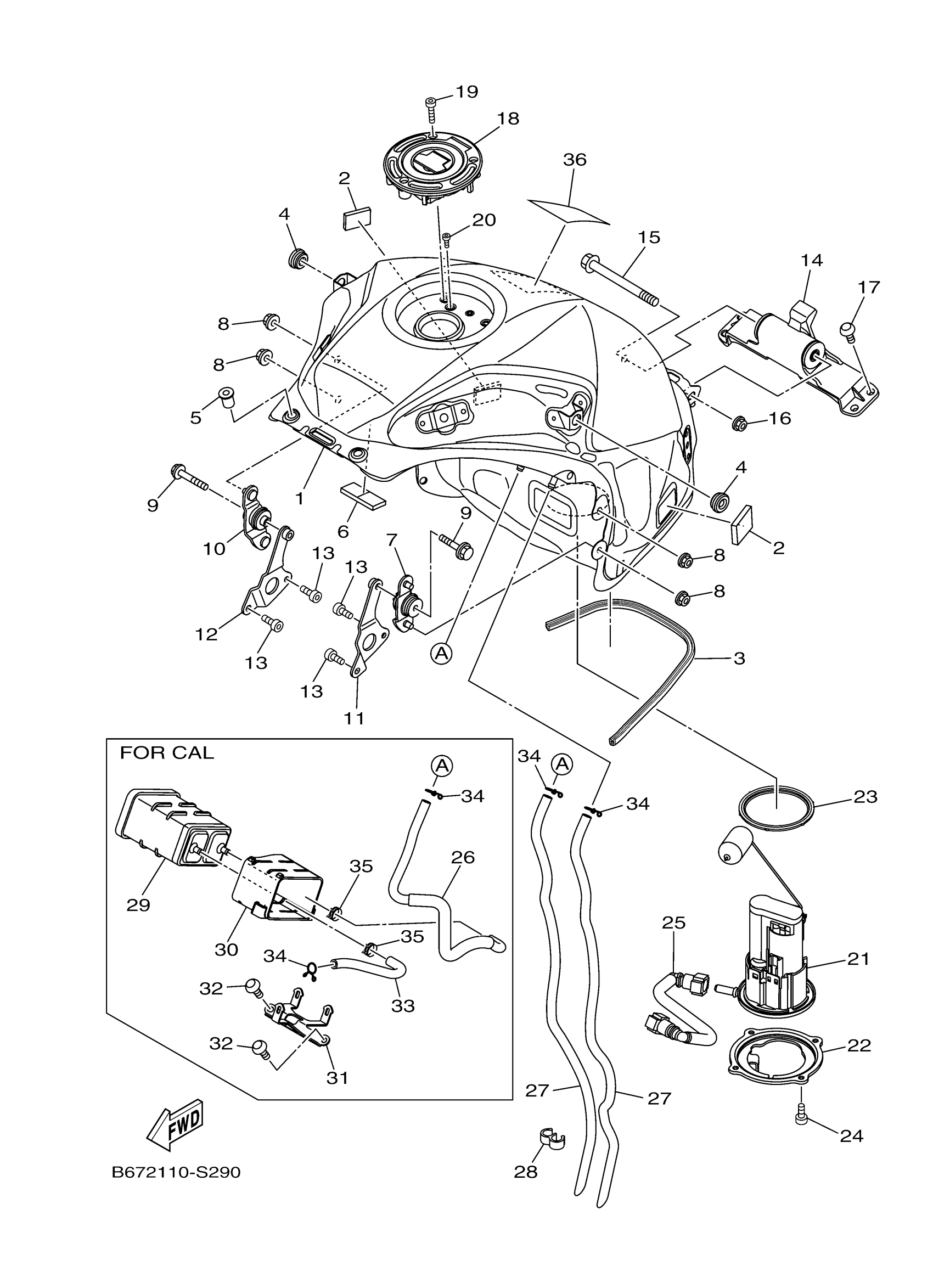 Yamaha FZ10HGY (FZ10) B6720 2017 FUEL TANK Diagram