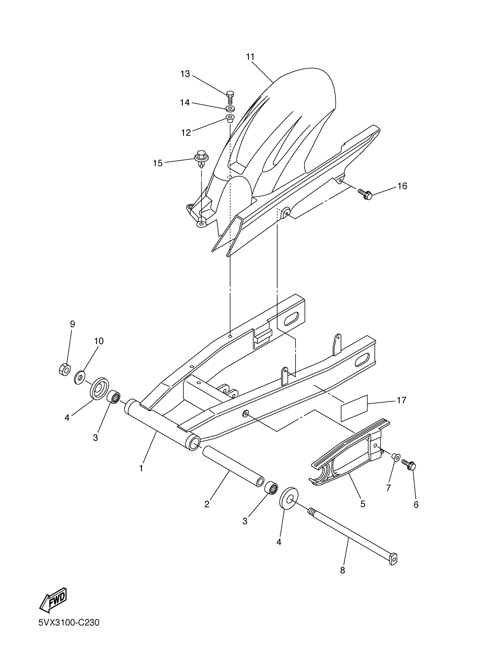 Yamaha FZ600SSC (FZ6 CA) 5VX4 2004 REAR ARM Diagram