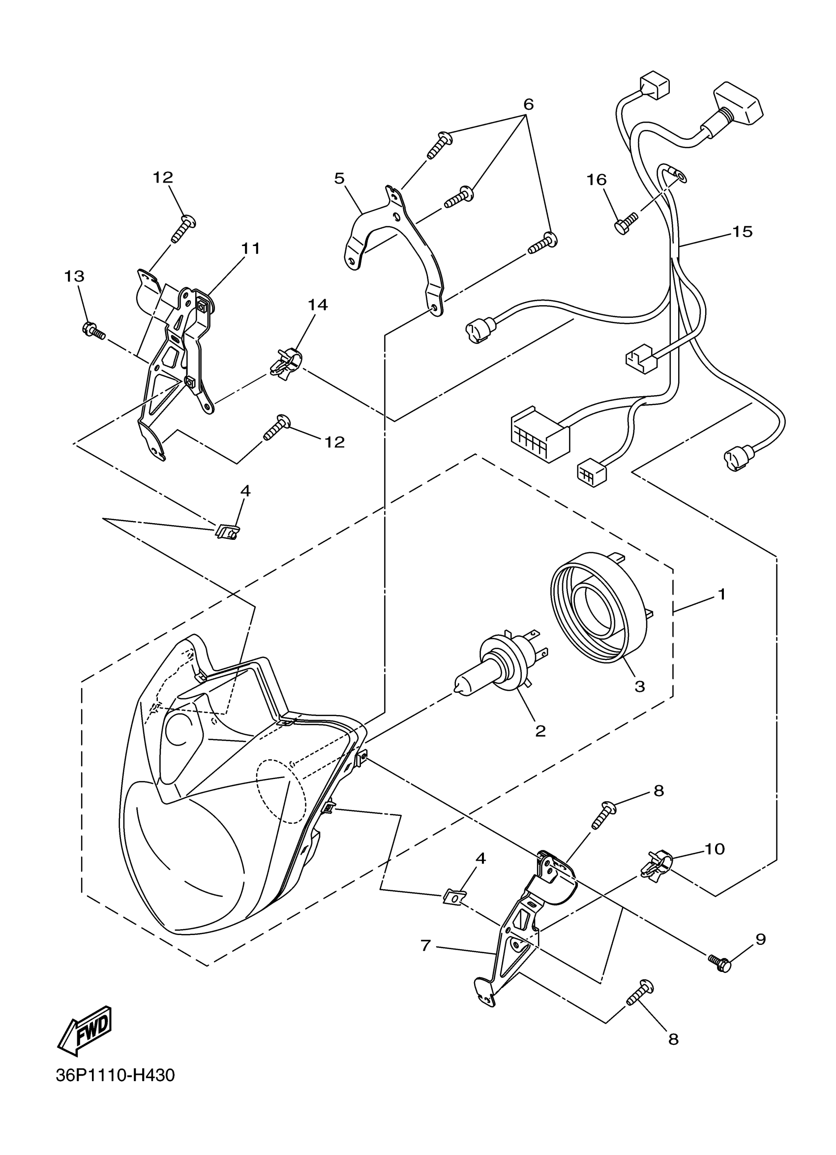 Yamaha FZ6RAO (FZ6R) 36PG 2011 HEADLIGHT Diagram