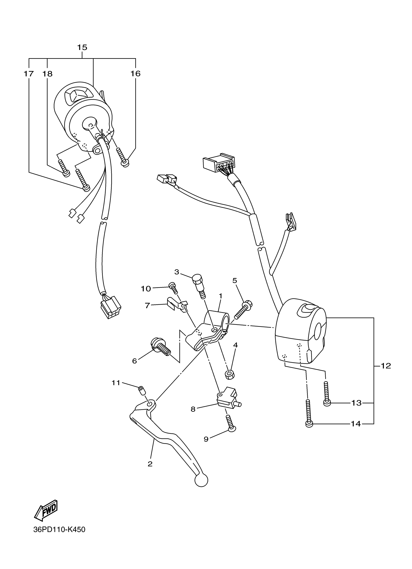 Yamaha FZ6RBW (FZ6R) 36PK 2012 HANDLE SWITCH LEVER Diagram