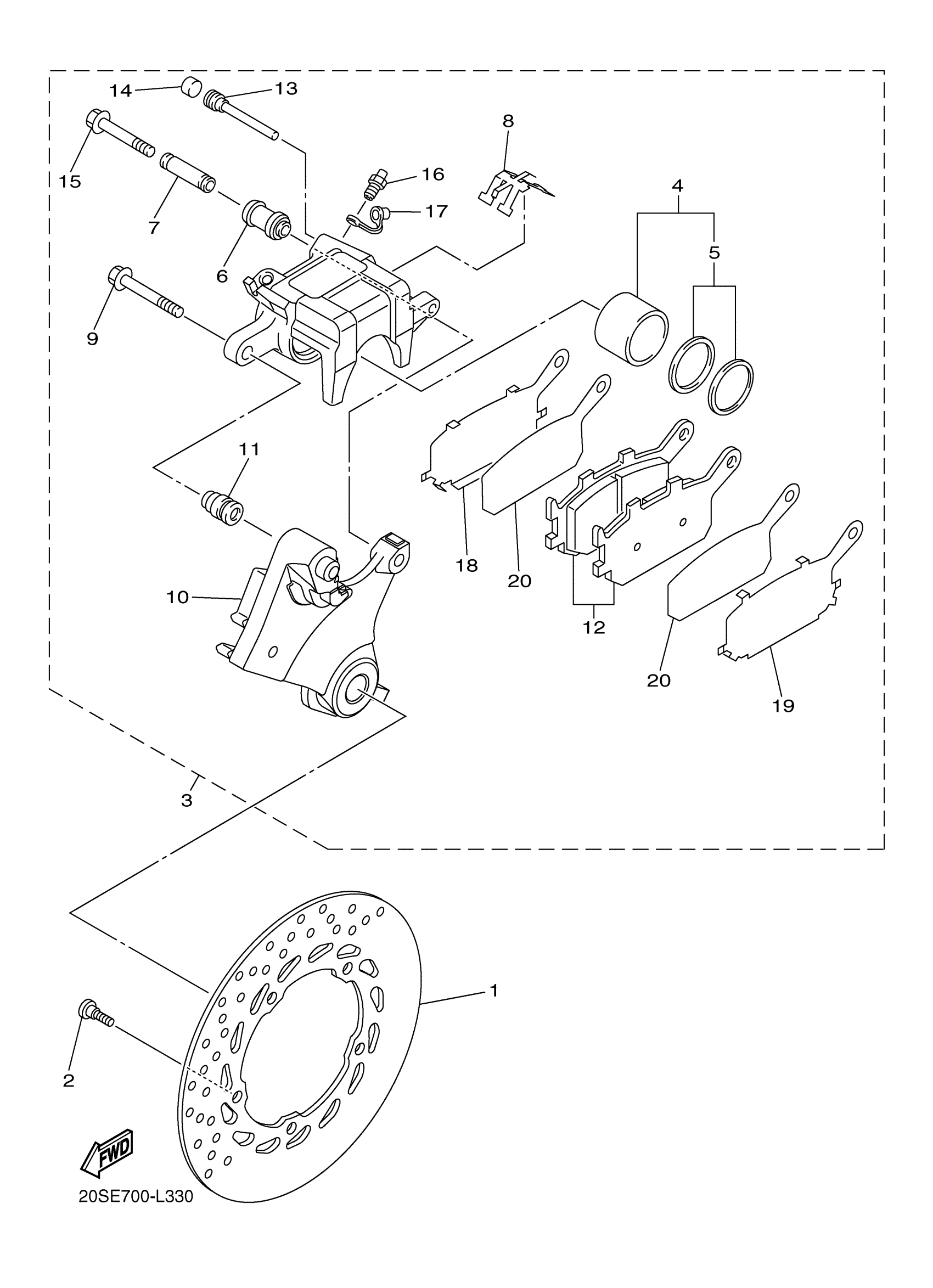 Yamaha FZ6RBW (FZ6R) 36PK 2012 REAR BRAKE CALIPER Diagram