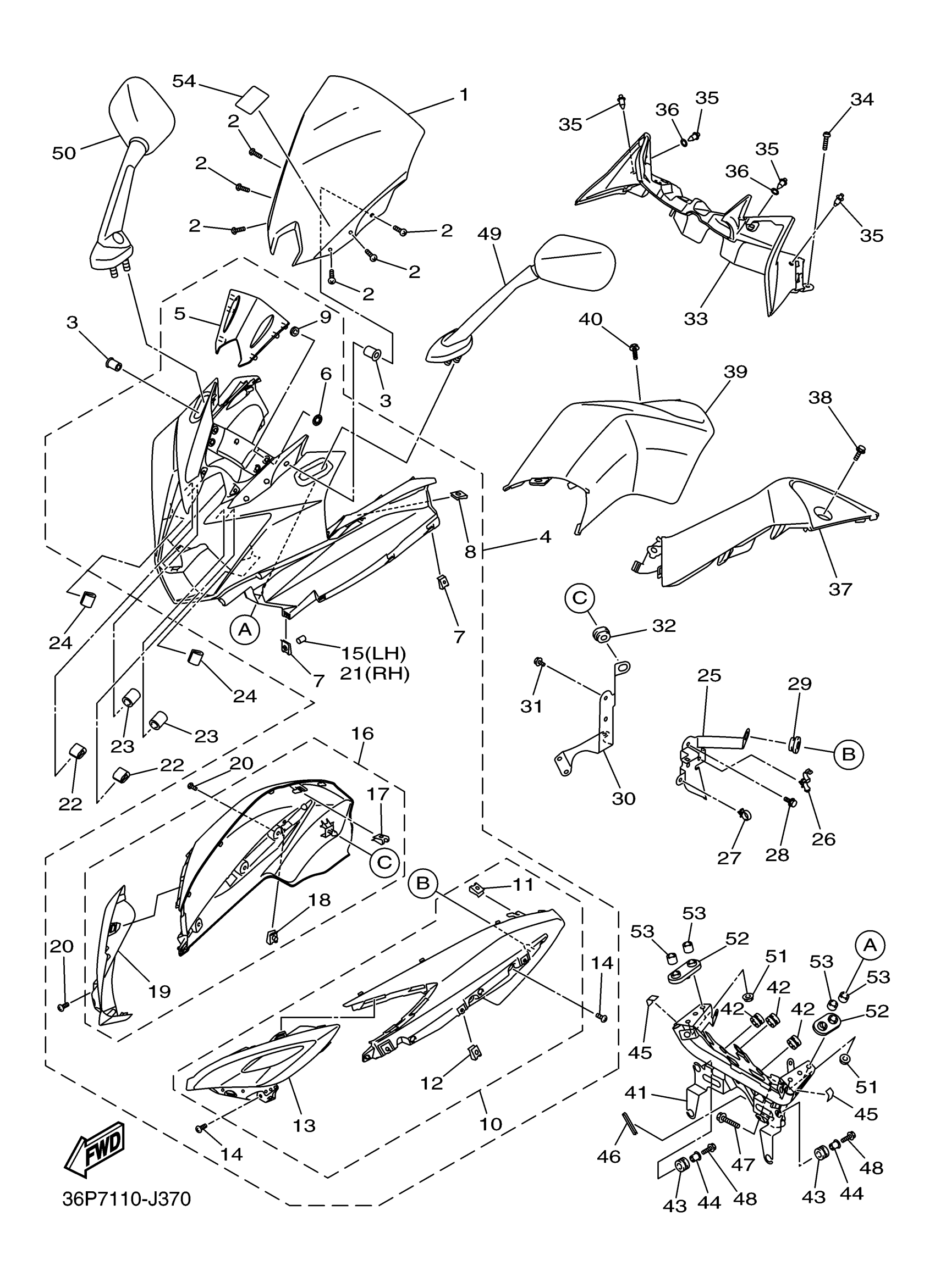 Yamaha FZ6RGCB (FZ6R CA) 2SRB 2016 COWLING 1 Diagram