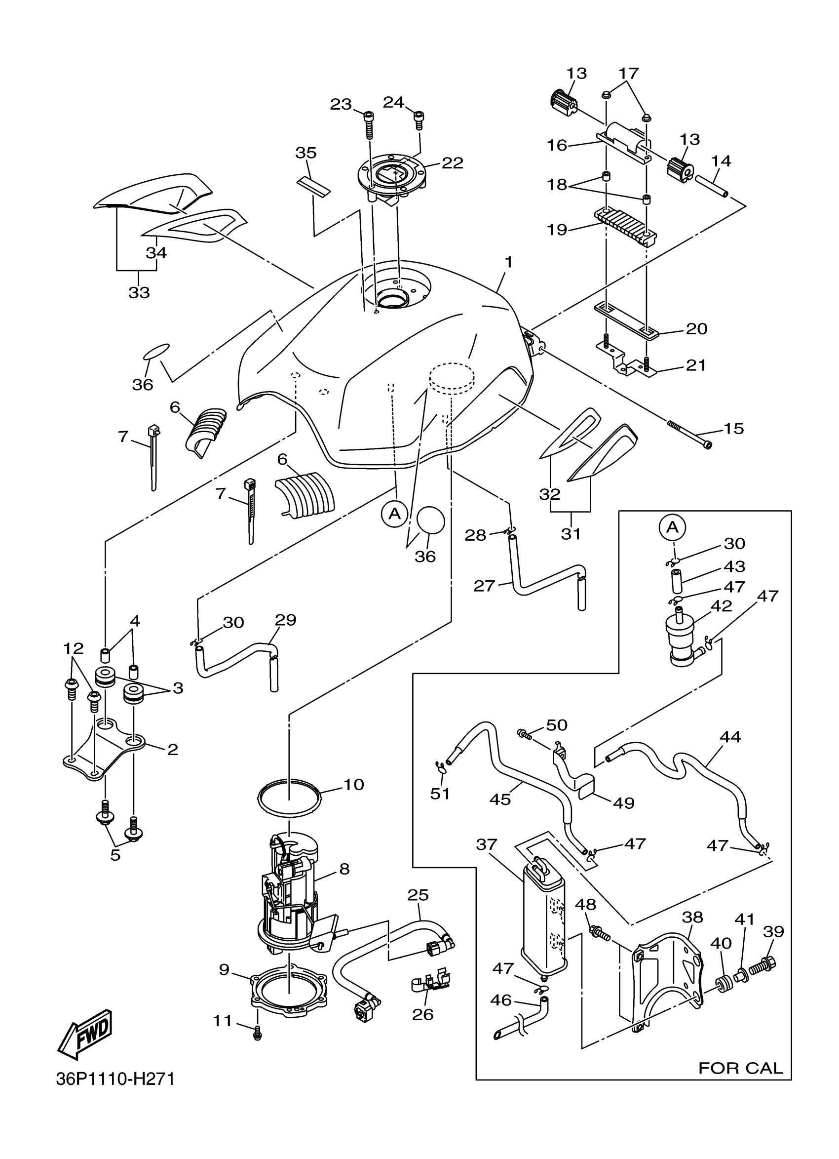 Yamaha FZ6RZCB (FZ6R CA) 36P8 2010 FUEL TANK Diagram