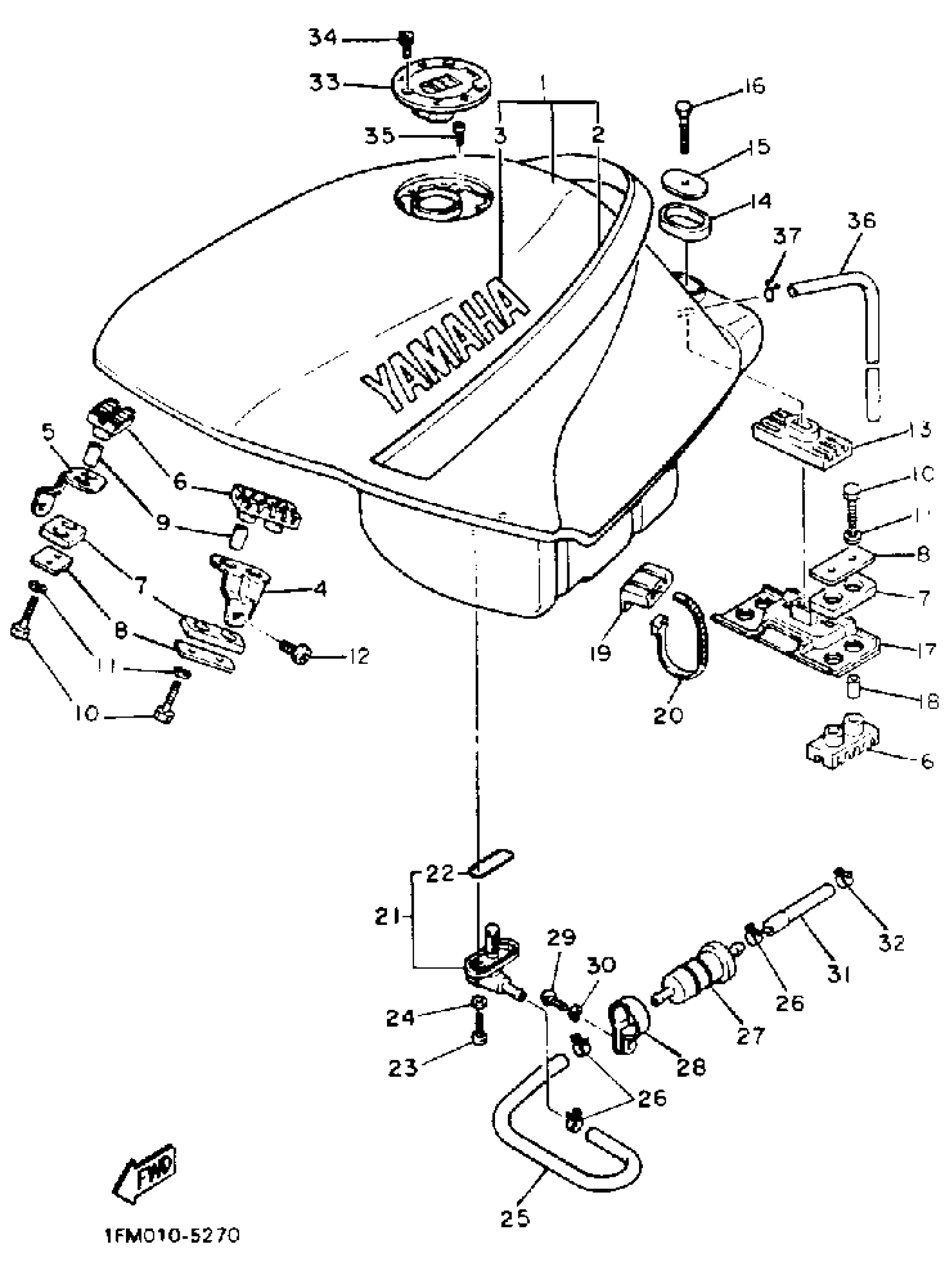 Yamaha FZ750SC (FZ750 CA) 1986 FUEL TANK NON CALIFORNIA MODEL Diagram