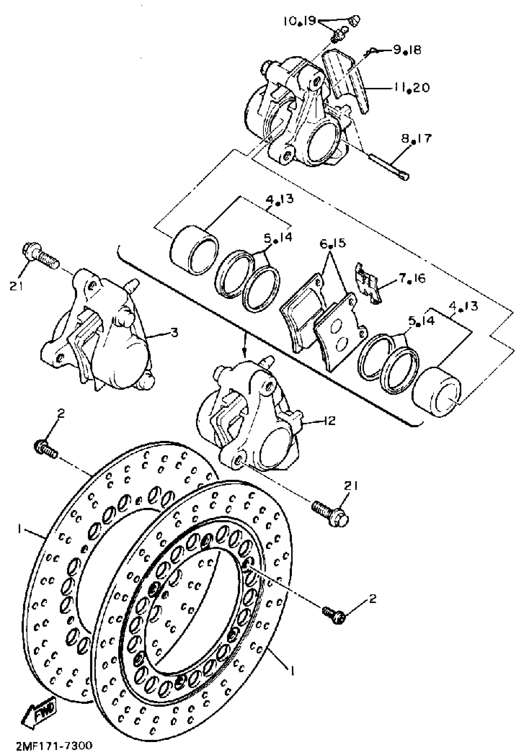 Yamaha FZ750UC (FZ750 CA) 1988 FRONT BRAKE CALIPER Diagram