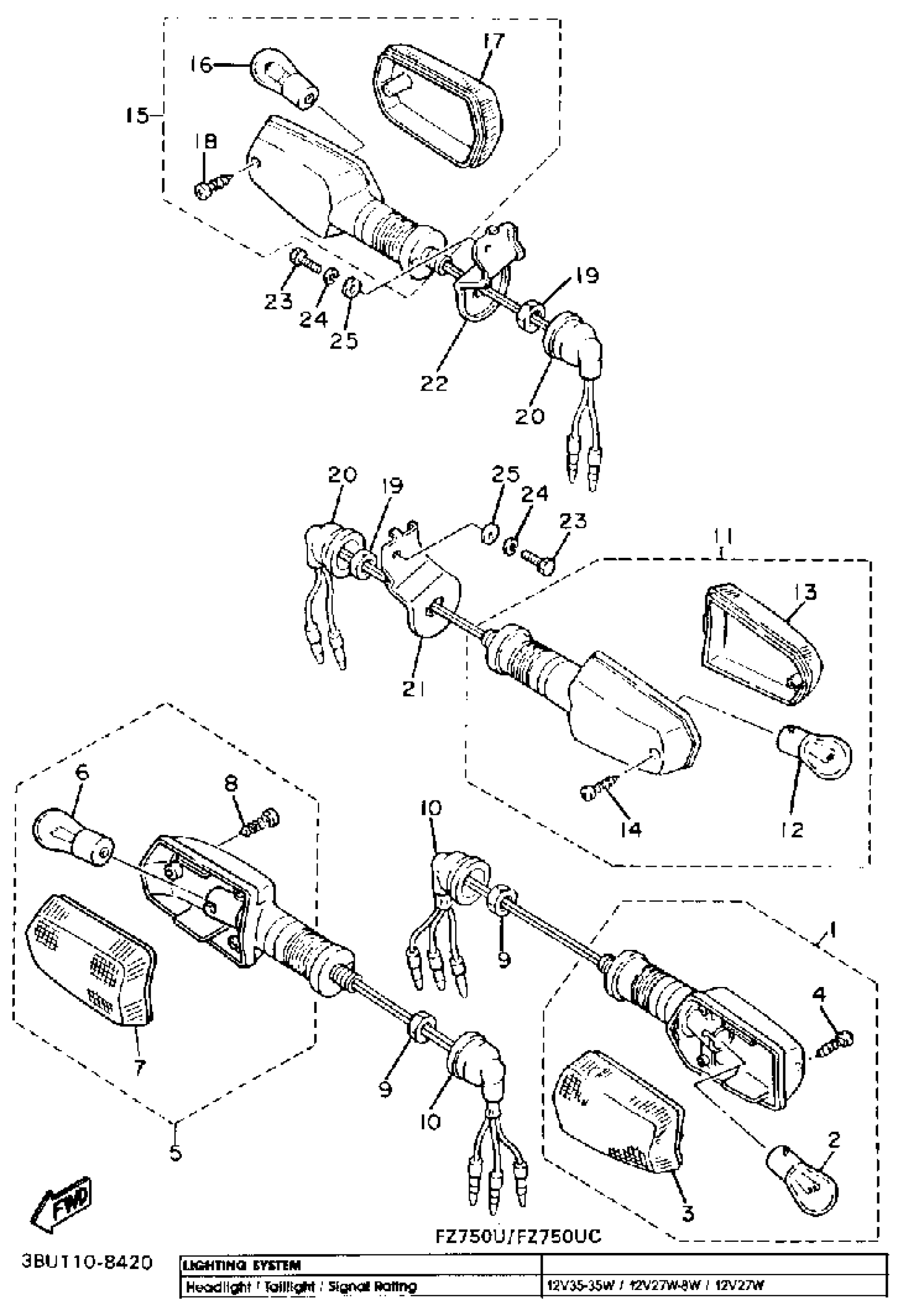 Yamaha FZ750UC (FZ750 CA) 1988 TURNSIGNAL Diagram