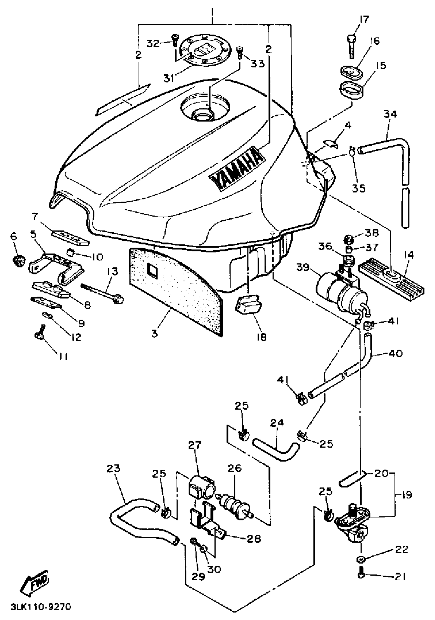 Yamaha FZR1000AC (FZR1000 CA) 1990 FUEL TANK NON CALIFORNIA MODEL Diagram