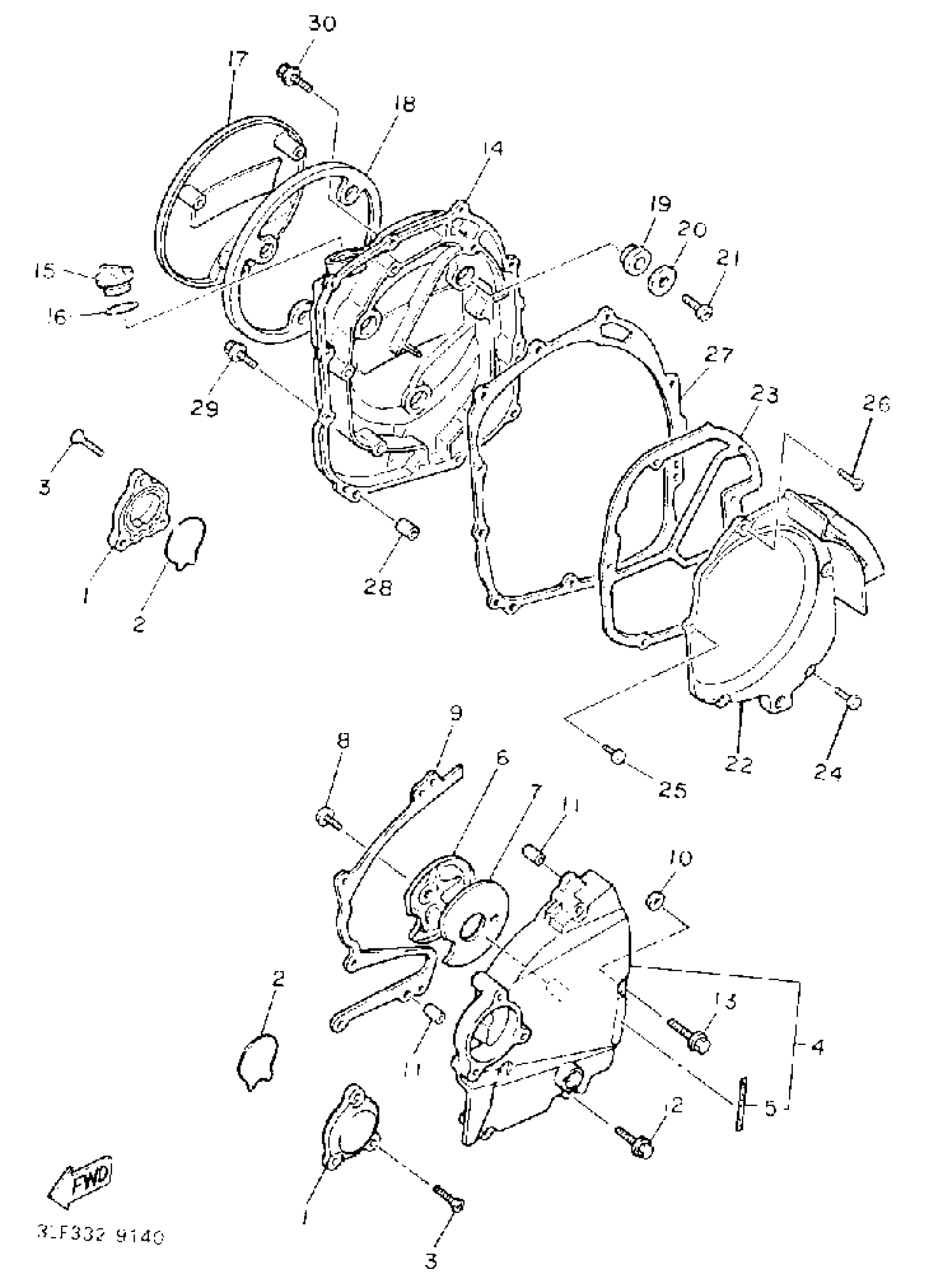 Yamaha FZR1000DC (FZR1000 CA) 1992 CRANKCASE COVER 1 Diagram