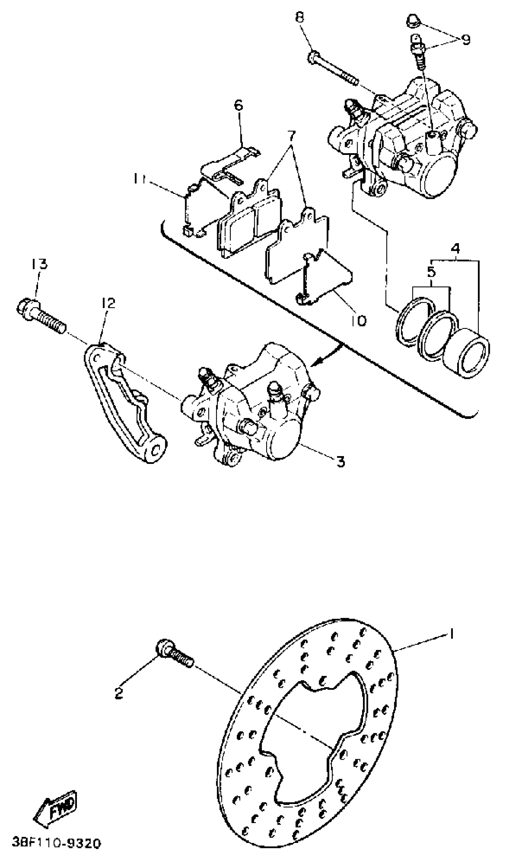 Yamaha FZR400A (FZR400) 1990 REAR BRAKE CALIPER Diagram