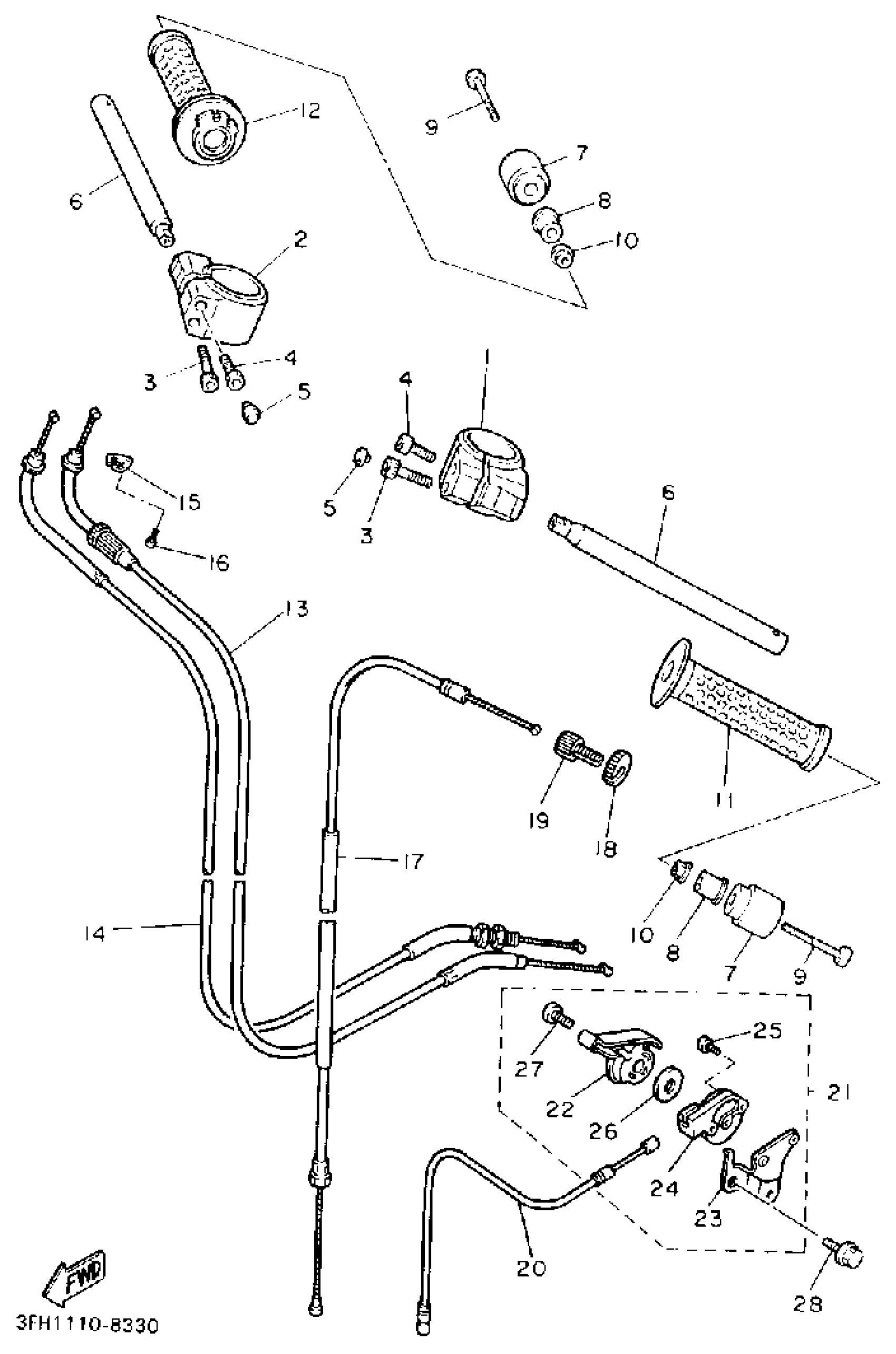 Yamaha FZR400SAC (FZR400 CA) 1990 HANDLEBAR CABLE Diagram