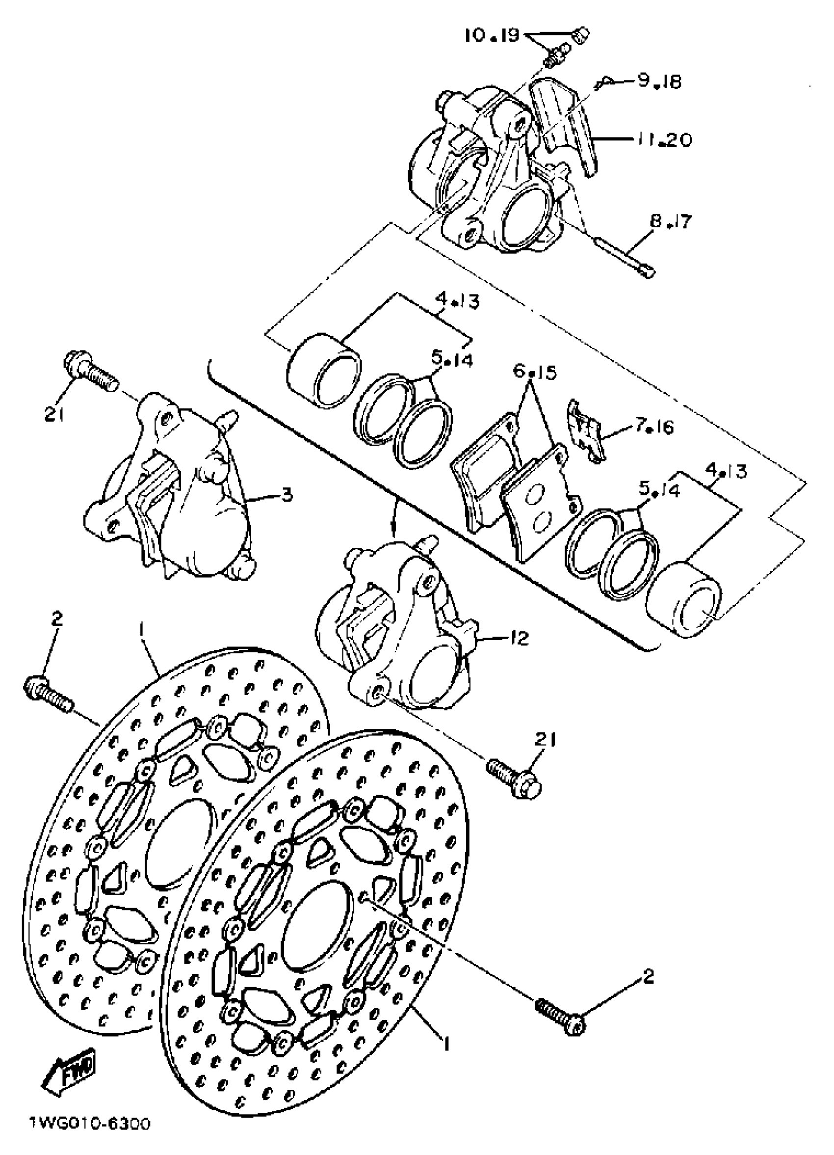 Yamaha FZR400U (FZR400) 1988 FRONT BRAKE CALIPER Diagram