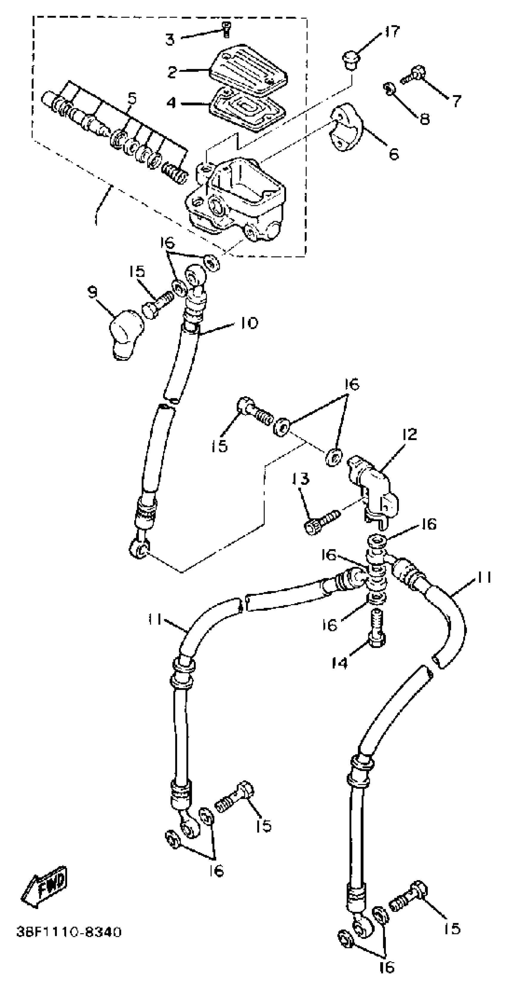 Yamaha FZR400U (FZR400) 1988 FRONT MASTER CYLINDER Diagram