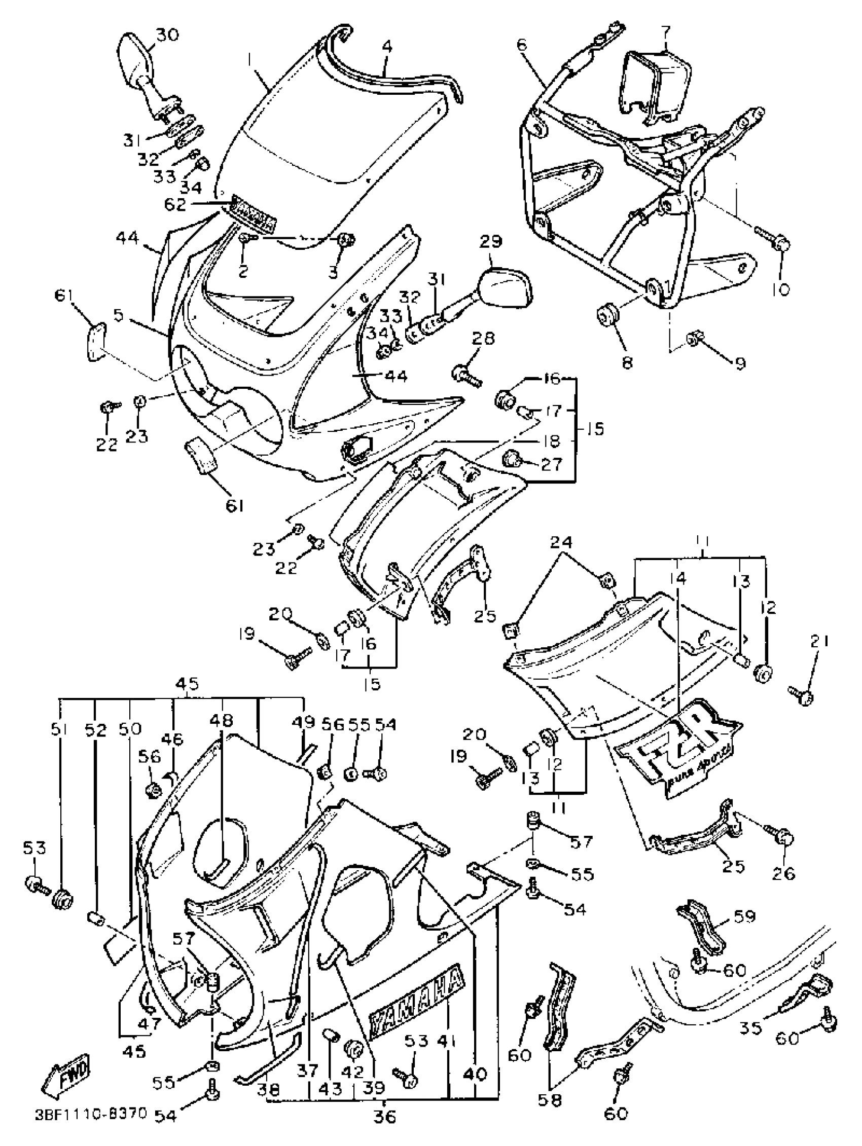 Yamaha FZR400W (FZR400) 1989 FAIRING COWLING Diagram