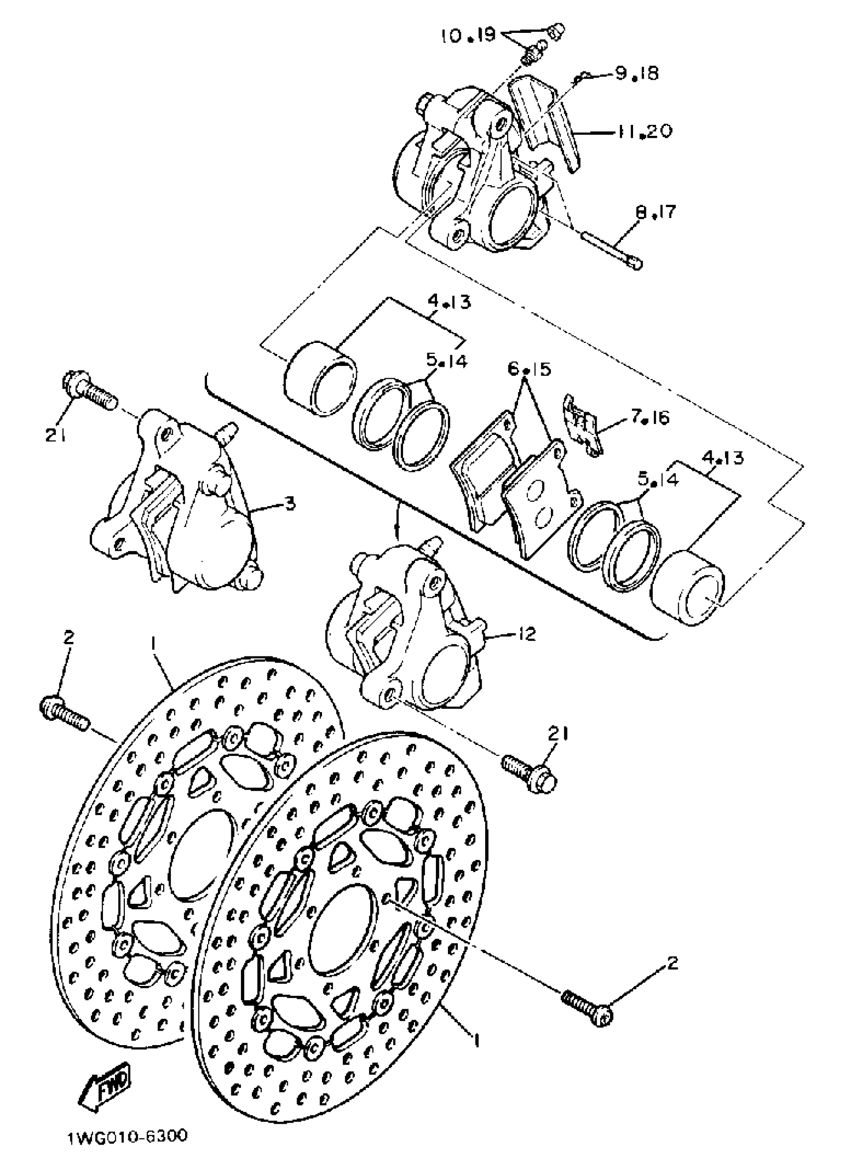 Yamaha FZR400W (FZR400) 1989 FRONT BRAKE CALIPER Diagram