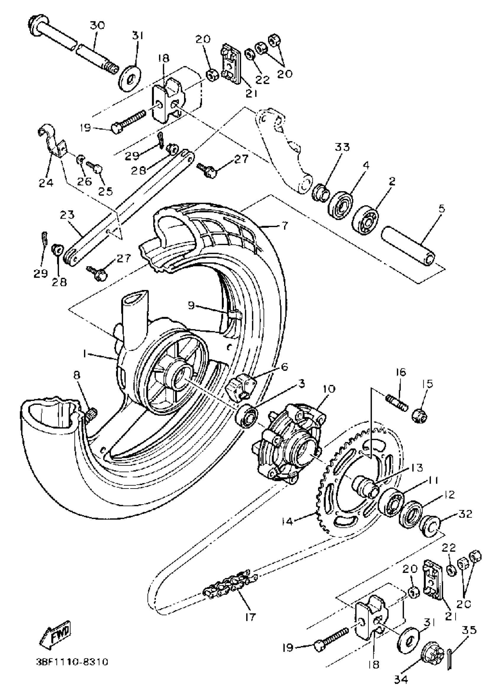 Yamaha FZR400W (FZR400) 1989 REAR WHEEL Diagram